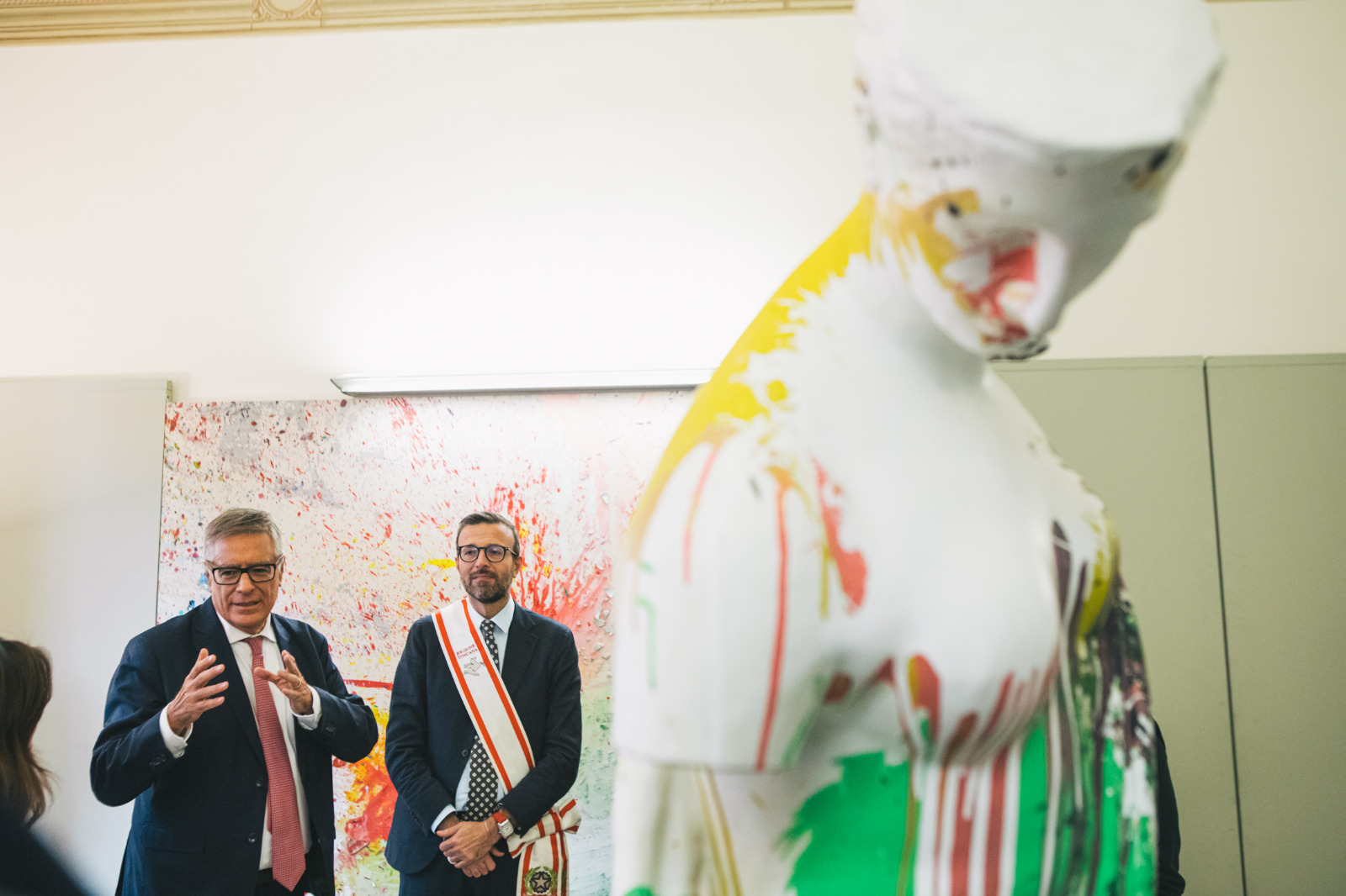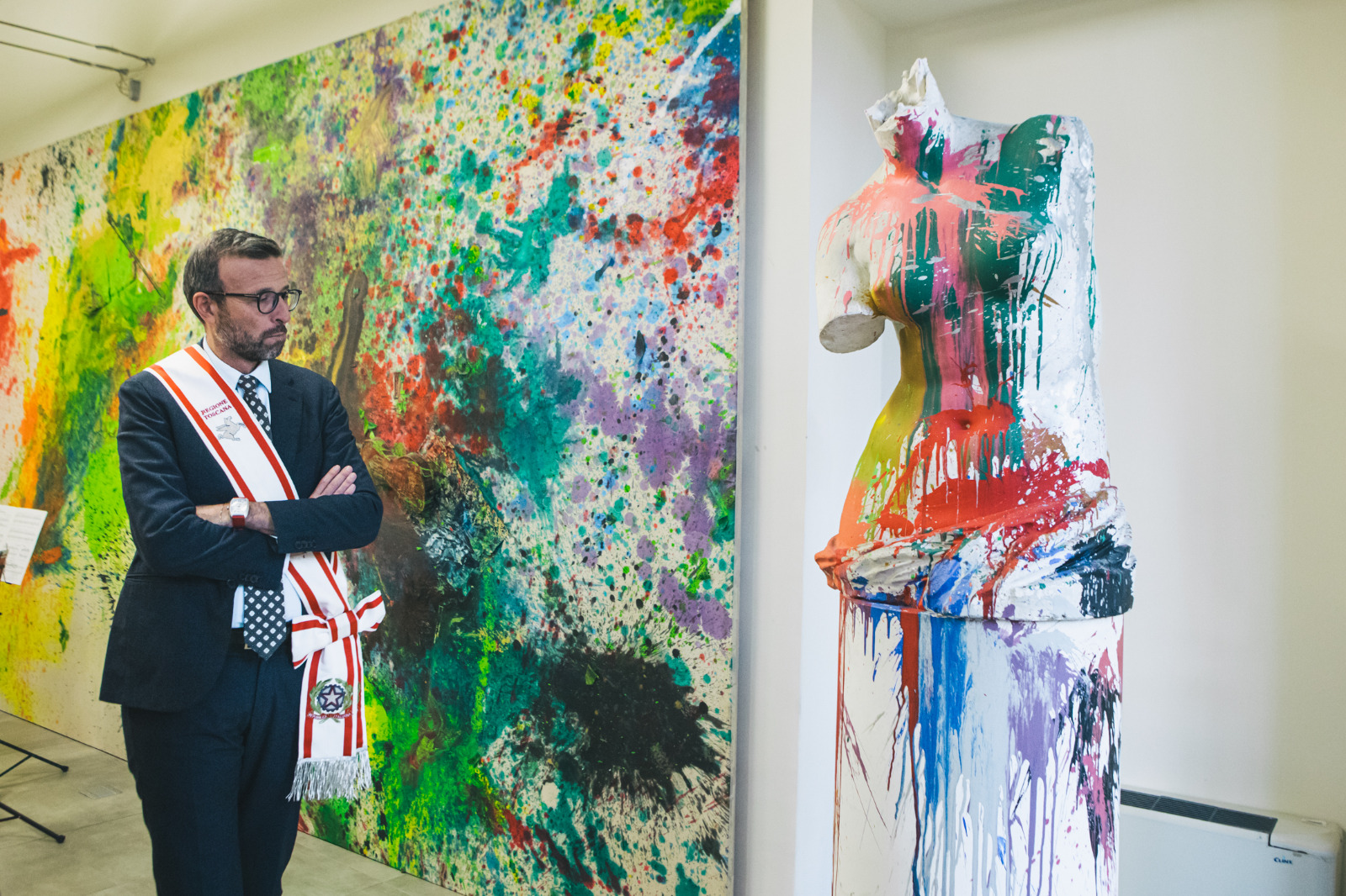 “È con grande piacere che il Consiglio regionale della Toscana apre le porte delle sale espositive di Palazzo Bastogi per la mostra “Shōzō Shimamoto. Gutai – Primo Assalto” – ha detto Antonio Mazzeo presidente del Consiglio regionale – dove sono esposte le opere dell’artista giapponese omonimo e del collettivo artistico Gutai. Si tratta di una personalità di primo piano, protagonista assoluto dell’arte contemporanea: Shōzō Shimamoto nella sua ricerca rifiuta ogni convenzione e restituisce l’arte alla sfera primordiale dell’esperienza umana, fuori dal controllo razionale e dalla logica ferrea che invece ha contrassegnato l’evoluzione artistica occidentale. Una provocazione che colpisce profondamente lo spettatore e genera quello “stupore” che per Shimamoto è la fondamentale caratteristica del gesto artistico. In un tempo come quello che viviamo, accogliere questa provocazione e favorire questo percorso spirituale diventa una necessità che anche le istituzioni devono fare propria. In merito, ringrazio la Fondazione Morra e l’Associazione Shōzō Shimamoto per l’opportunità offerta: una mostra che rende i nostri spazi, già segnati dalla bellezza, ulteriormente densi di quello stupore che solo l’arte sa generare.”