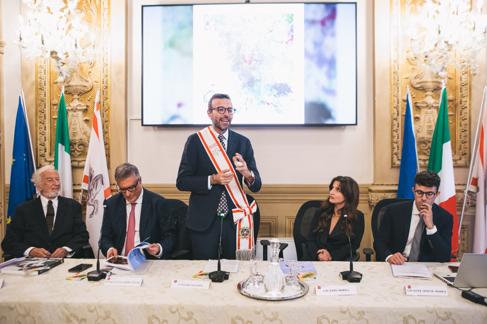 Alla conferenza stampa di presentazione sono intervenuti Antonio Mazzeo presidente del Consiglio regionale, Pasquale Giuseppe Macrì comitato scientifico ArsNova, Isabella Morra della Fondazione Morra, Giuseppe Simone Modeo editorialista, Italo Tomassoni critico d’arte.