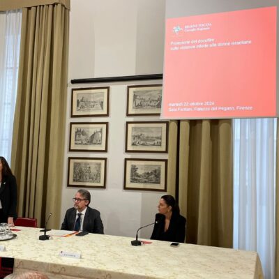 “La nostra associazione si articola su tutto il territorio nazionale con lo scopo di promuove il contrasto all’antisemitismo e all’antisionismo – ha detto la presidente dell’Unione associazioni Italia-Israele Celeste Vichi – e di fornire una corretta informazione in questo momento particolarmente delicato dovuto alla guerra e al conflitto in cui lo stato di Israele è stato trascinato. Siamo grati al Consiglio regionale di aver approvato questa iniziativa all’unanimità e aver consentito la proiezione del docufilm “Screams Before Silence”. Non si deve mettere sullo stesso piano aggressore e aggredito e questo documentario testimonia come la violenza sulle donne israeliane è stata usata come uno strumento di guerra. La Regione Toscana ha anche approvato una Risoluzione che condanna le forme di antisemitismo e questo è ancora più importante dopo quanto è accaduto il 7 ottobre 2024 in Israele.”
