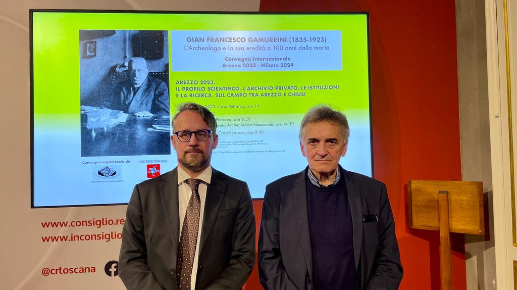 Il presidente dell’Accademia Petrarca di Lettere, Arti e Scienze di Arezzo Giulio Firpo ha parlato del convegno come un omaggio dovuto a Gamurrini: “Prima di tutto per la grandezza del personaggio, uno dei più importanti uomini di cultura aretini a cavallo tra il diciannovesimo e il ventesimo secolo: un grande archeologo, etruscologo, epigrafista a livello nazionale e internazionale, che all’età di soli 27 anni fu chiamato a lavorare all’Istituto di Corrispondenza Archeologica di Roma, gestito dall’impero prussiano, tra i massimi riferimenti per la storia antica e per l’archeologia mondiali”. “Inoltre – ha aggiunto – l’Accademia non poteva esimersi dal celebrare questa ricorrenza perché Gamurrini ne è stato presidente per 38 anni fino alla morte, traghettandola, con accortezza e saggezza, dal periodo che ha preceduto la prima guerra mondiale fino al difficilissimo secondo dopoguerra”. Firpo ha poi ricordato il progetto di digitalizzazione dell’archivio Gamurrini, “che diventerà patrimonio stabile della città”.