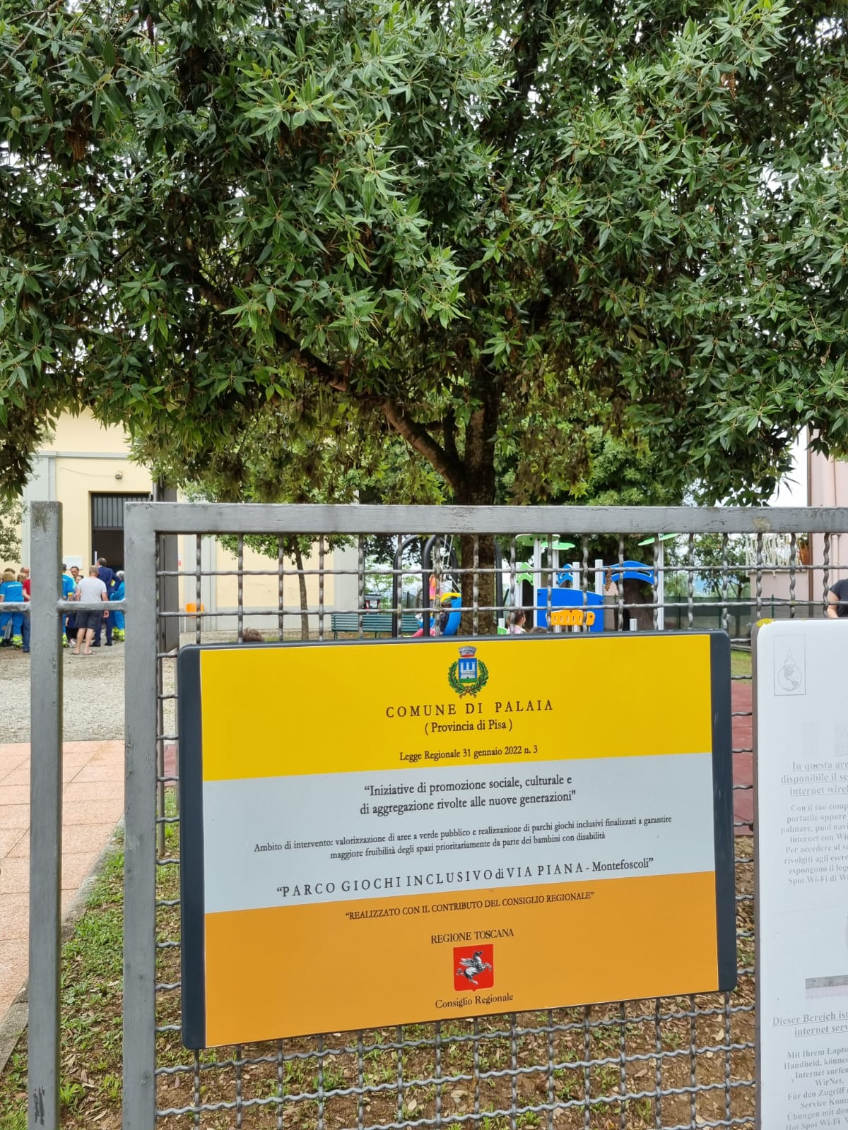 Firenze – Il presidente del Consiglio regionale Antonio Mazzeo ha inaugurato lunedì 5 giugno il nuovo parco giochi inclusivo nella frazione di Montefoscoli, nel comune di Palaia, in provincia di Pisa, realizzato grazie al contributo dell’Assemblea legislativa toscana. Soldi messi a disposizione dal bando Ri-Generazione Toscana. Al taglio del nastro ha partecipato anche il sindaco di Palaia Marco Gherardini ed era presente la scuola dell’infanzia Pinocchio di Montefoscoli.
