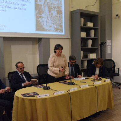 Dopo i saluti della presidente, sono intervenuti Michele Capitani, vicesindaco del comune di Siena, Rossana Ragionieri, presidente Proloco Empoli, Riccardo Nencini, presidente del Gabinetto Vieusseux, Alessio Piscini, figlio del collezionista Odoardo e la curatrice Francesca Roberti.