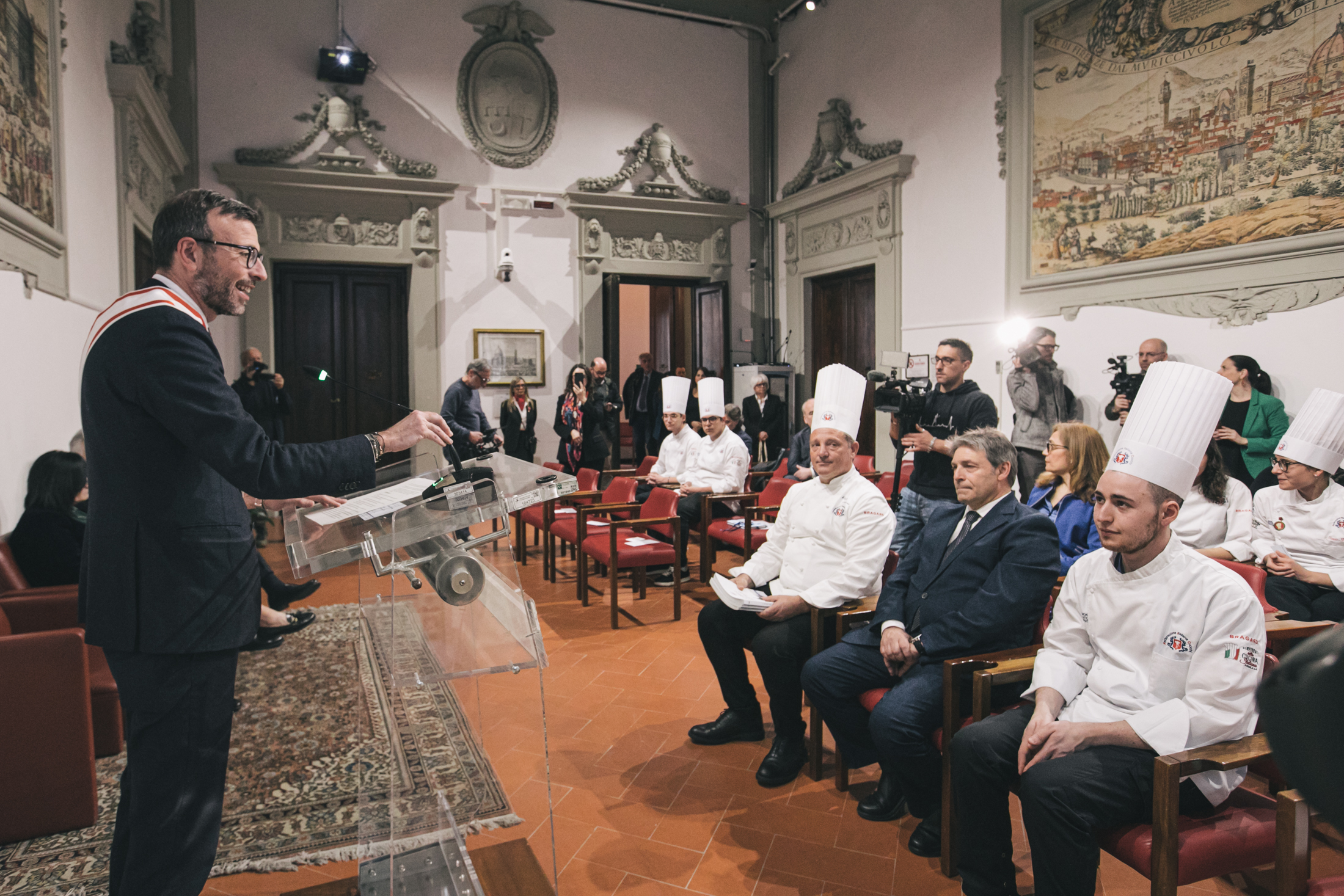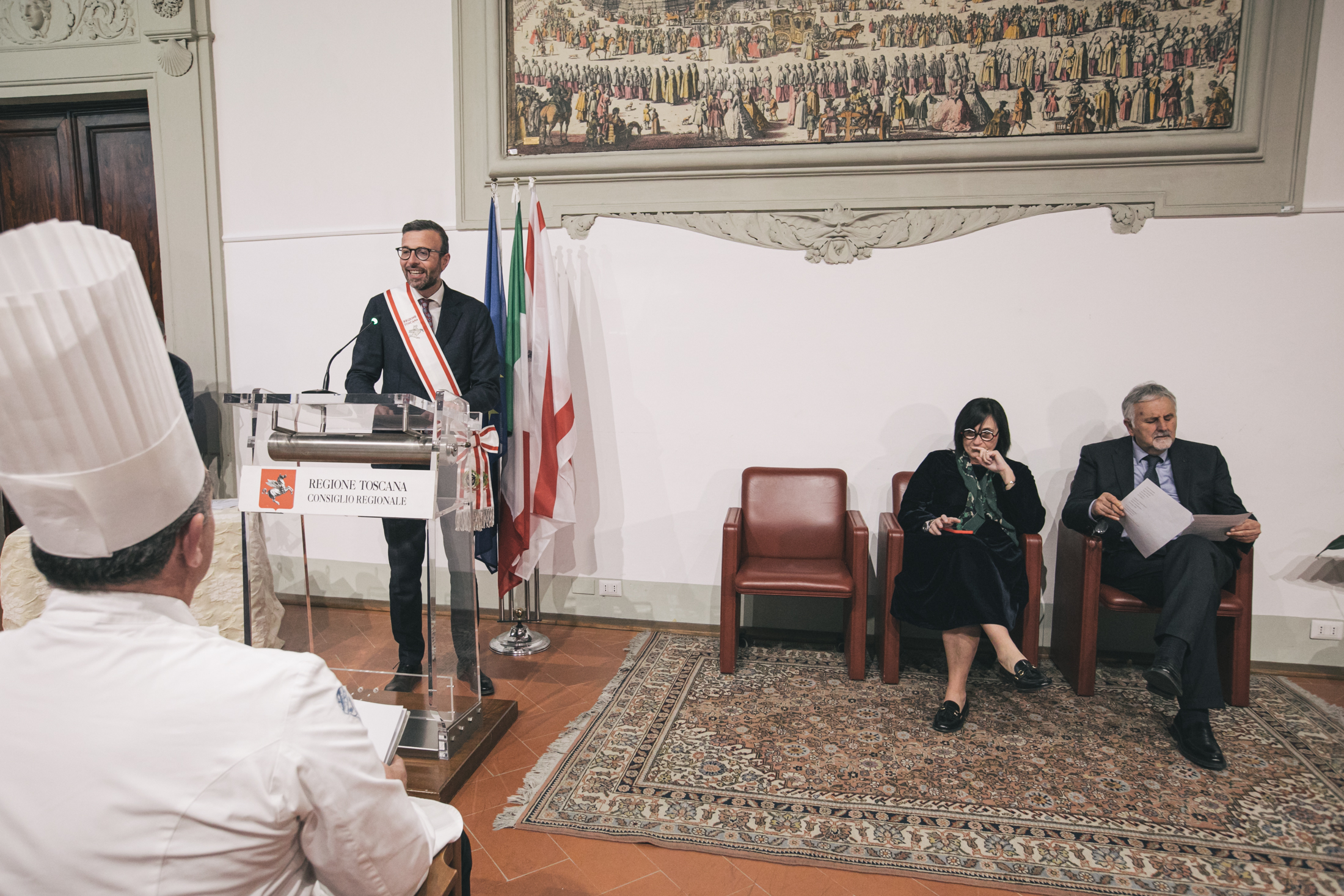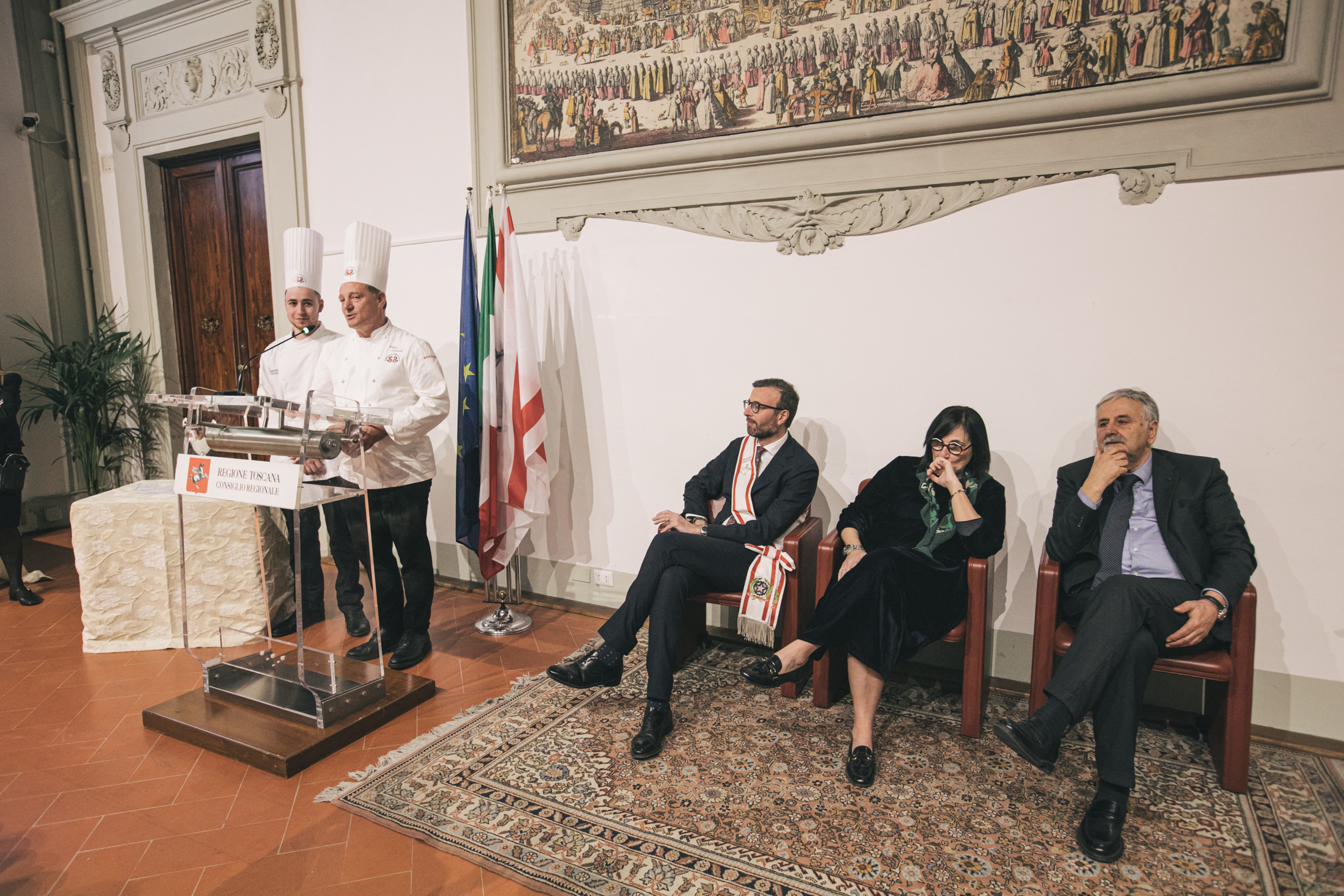 Hanno partecipato alla cerimonia i consiglieri regionali Lucia De Robertis e Vincenzo Ceccarelli, il presidente dell’Unione regionale cuochi della Toscana Roberto Lodovichi e il professor Antonio Antonino dell’Istituto professionale di Stato per l’Enogastronomia e l’Ospitalità Alberghiera ‘Martini’ di Montecatini Terme che tra gli allievi ha selezionato la squadra.