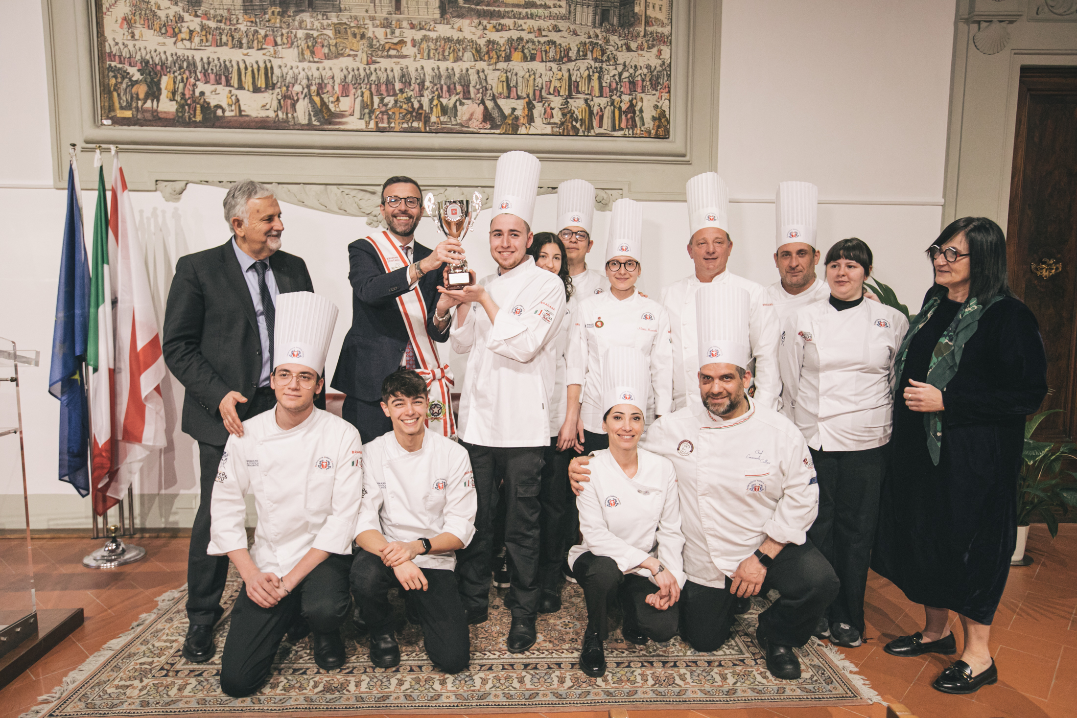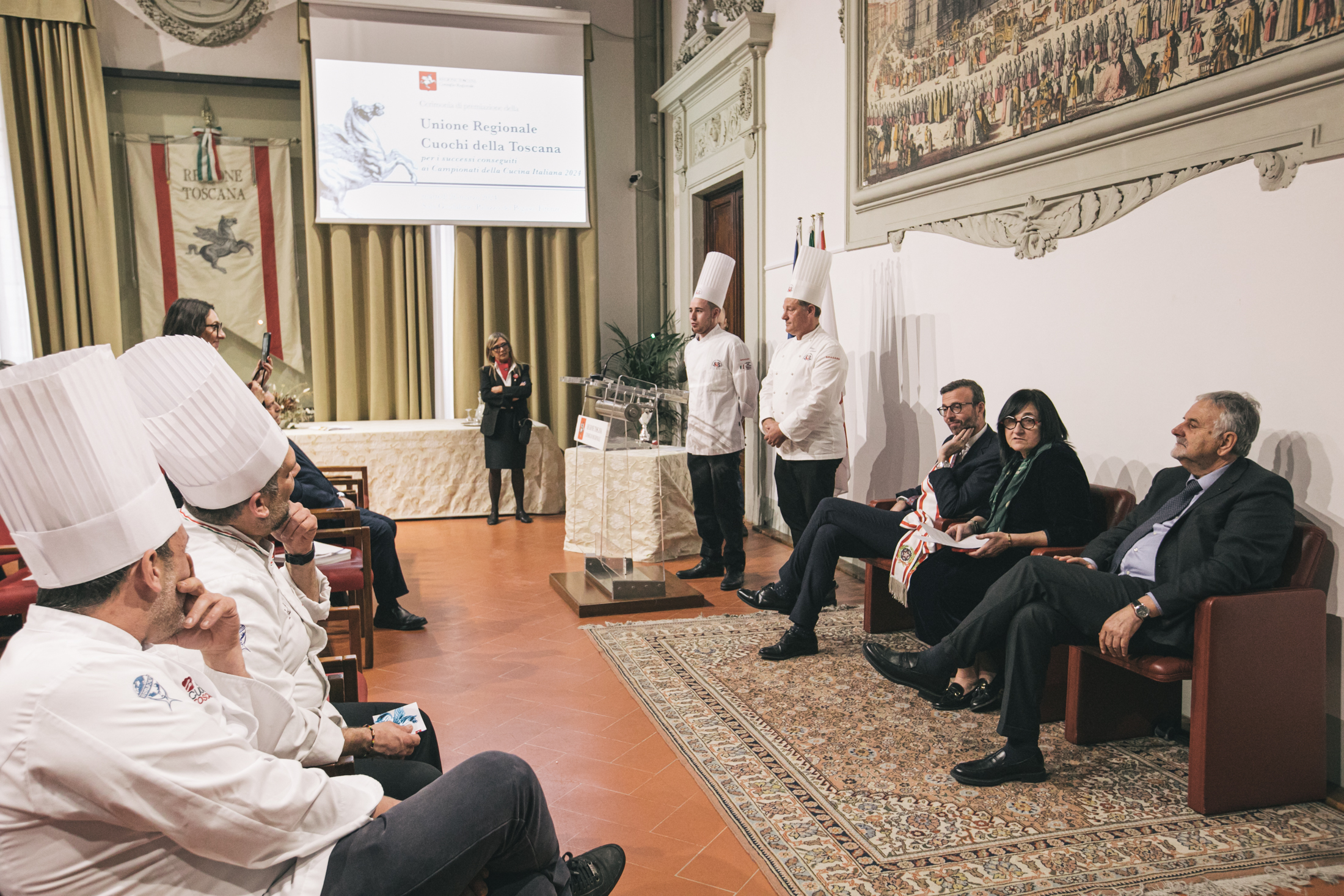 La cerimonia nella sala Gonfalone di palazzo del Pegaso. Le ragazze e i ragazzi dello Junior Team hanno vinto il primo premio nella categoria ‘Cucina calda a squadre’ ai campionati italiani 2024