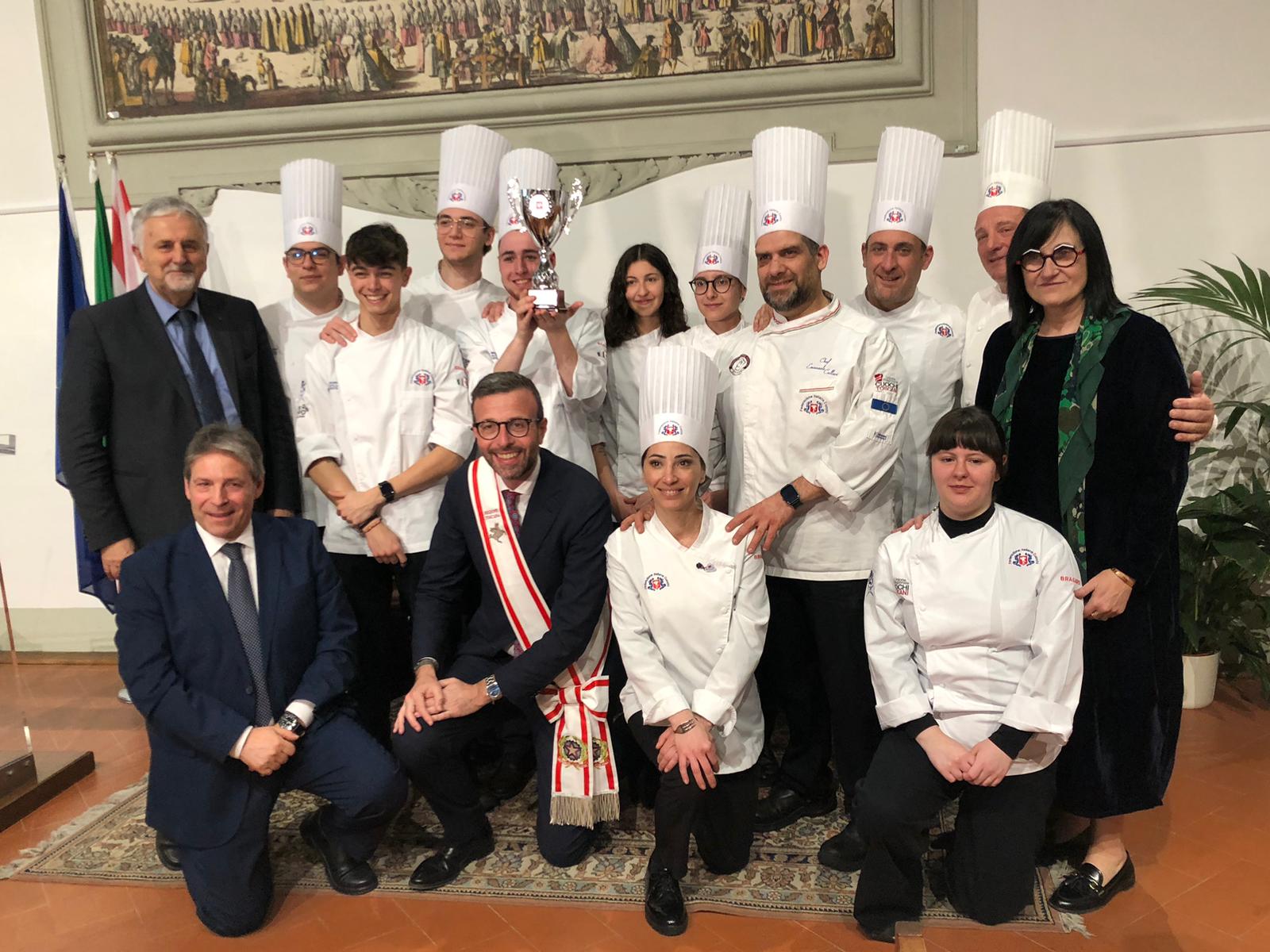 Firenze – Hanno portato in alto il nome della Toscana, valorizzando i suoi prodotti tipici e la sua tradizione enogastronomica, le ragazze e i ragazzi dello Junior Team che hanno vinto il primo premio nella categoria ‘Cucina calda a squadre’ ai campionati italiani 2024 promossi dalla Federazione Italiana Cuochi e riconosciuti dal circuito Worldchefs. Per questo il Consiglio regionale della Toscana li ha voluti premiare con una coppa per l’importante traguardo raggiunto.