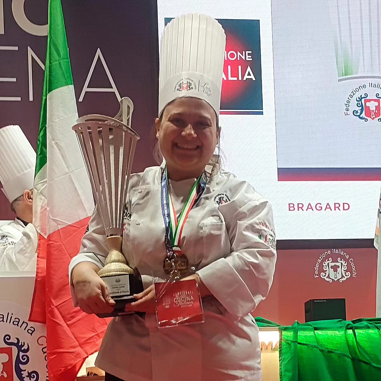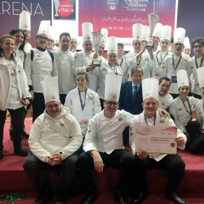 Molto emozionato, a ritirare il premio con la squadra è stato il team manager Tommaso Monaci: “Abbiamo vinto con un menù composto da quattro portate. Siamo partiti con un antipasto che aveva come protagonista il gambero, il primo piatto erano dei tortelli ripieni di ricotta e cavolo nero, accompagnati da una battuta di gallinella, il secondo un filetto di maiale brado toscano con fungo cardoncello e fagioli all’uccelletto, mentre nel dolce è stata protagonista la fragola”.