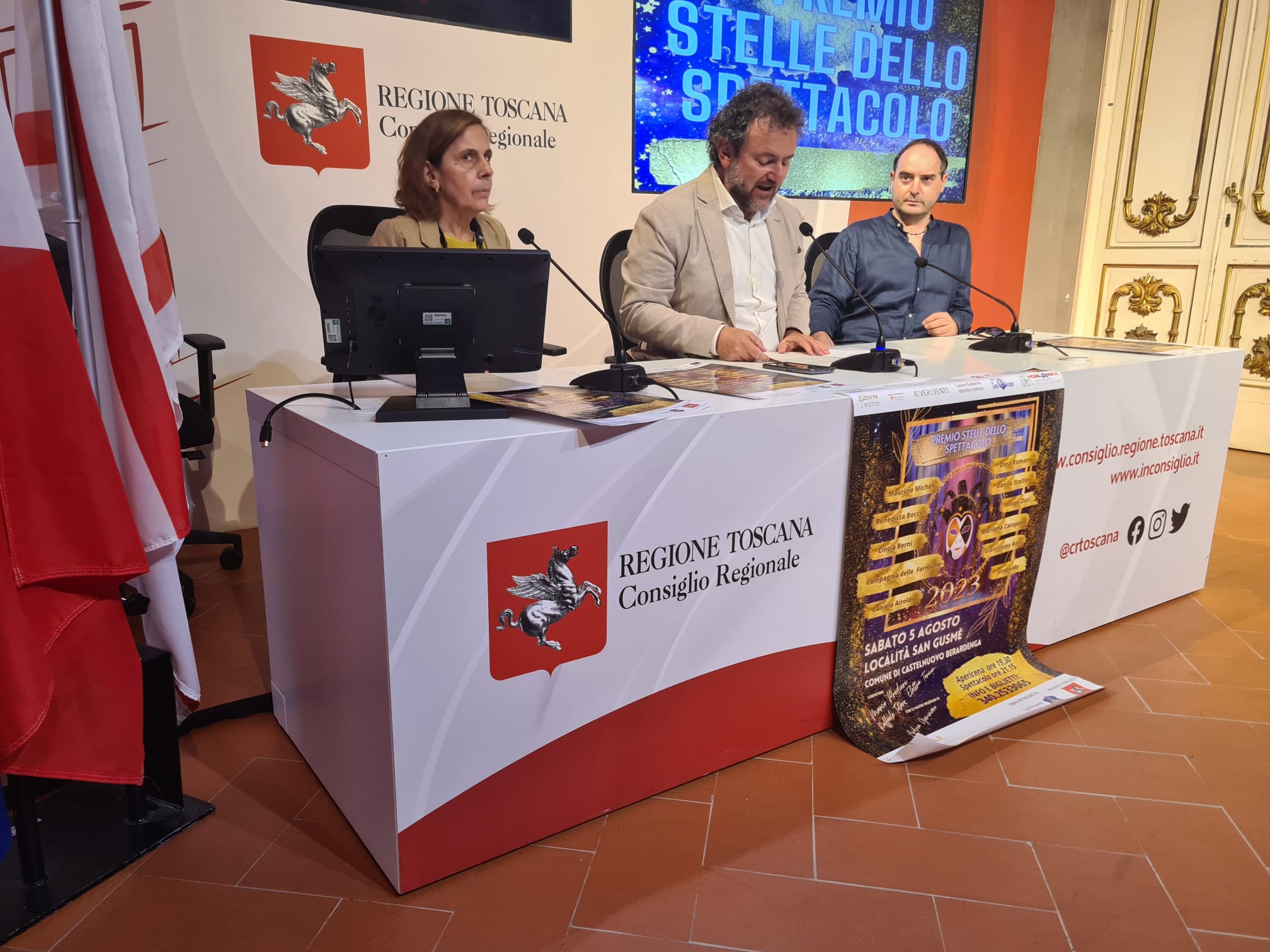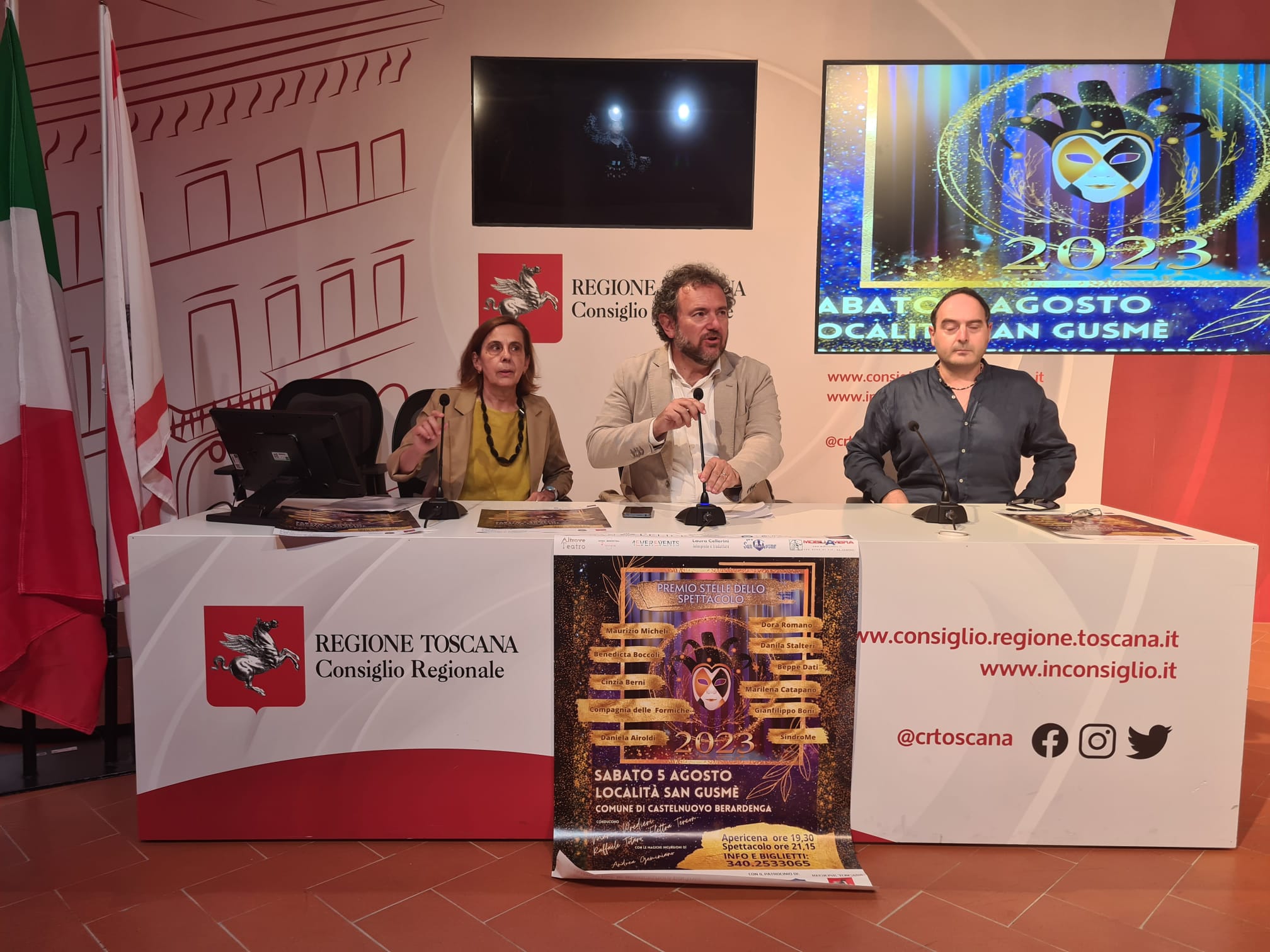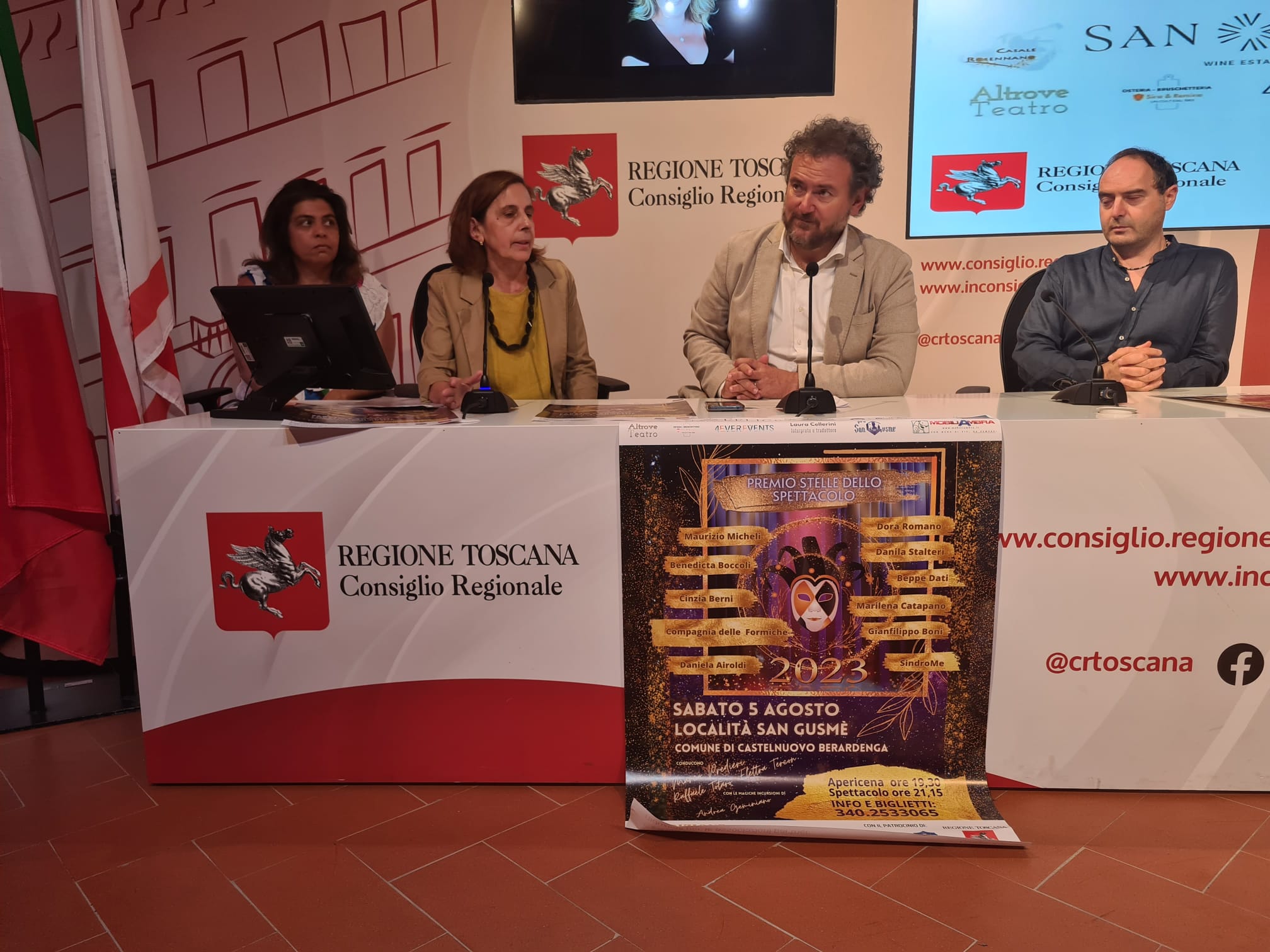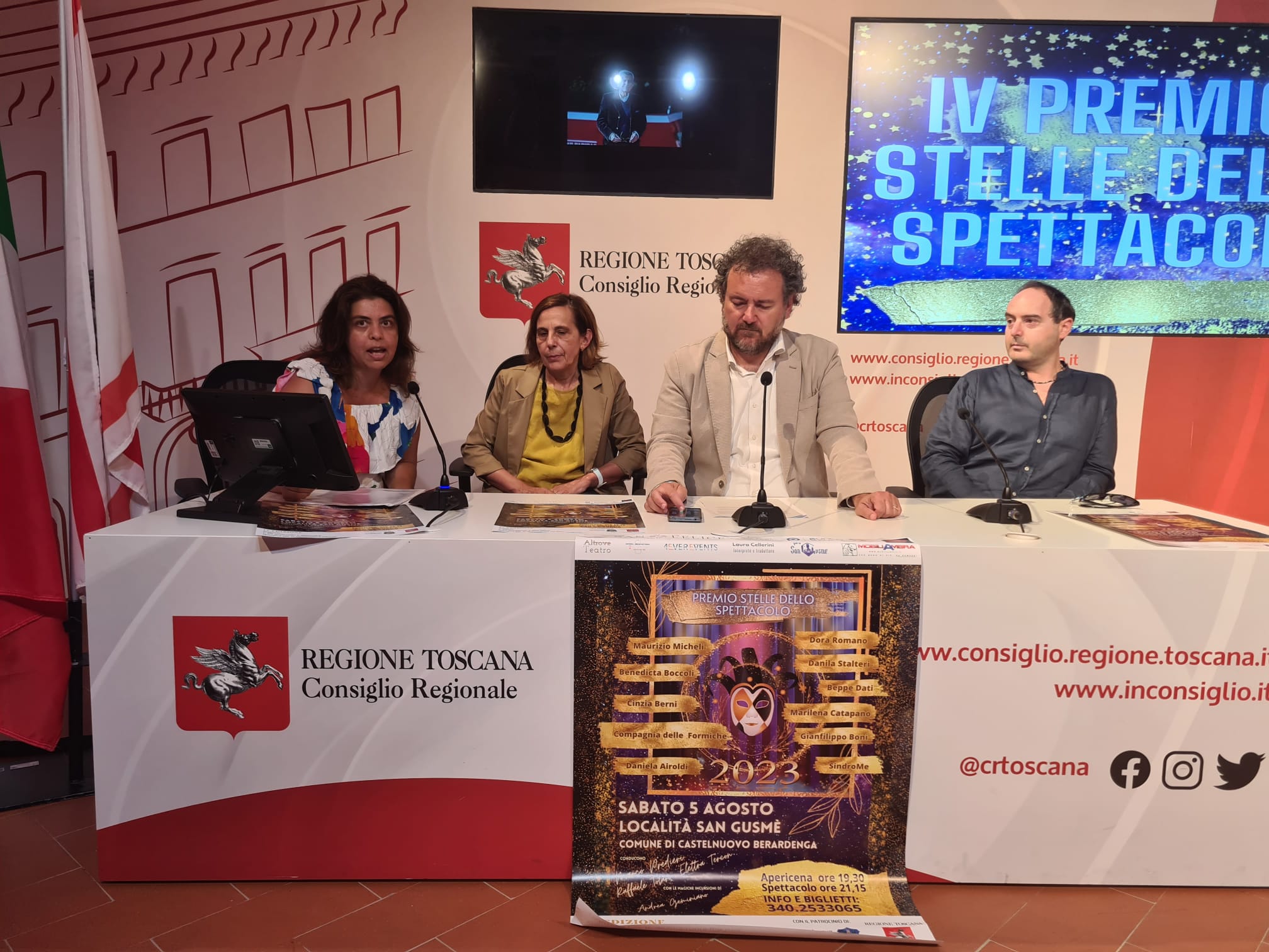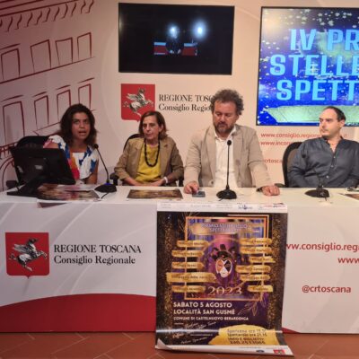 Sono intervenuti Francesco Gazzetti segretario questore dell’Ufficio di presidenza, Anna Paris consigliere regionale, Laura Cellerini presidente Premio Stelle dello Spettacolo, Marco Predieri direttore artistico del premio. La quarta edizione del premio si svolgerà sabato 5 agosto presso la località di San Gusmè, nel comune di Castelnuovo Berardenga, ed è una manifestazione nata nei mesi più difficili della pandemia, come risposta concreta al dramma che stavano vivendo in quel momento i lavoratori dello spettacolo.