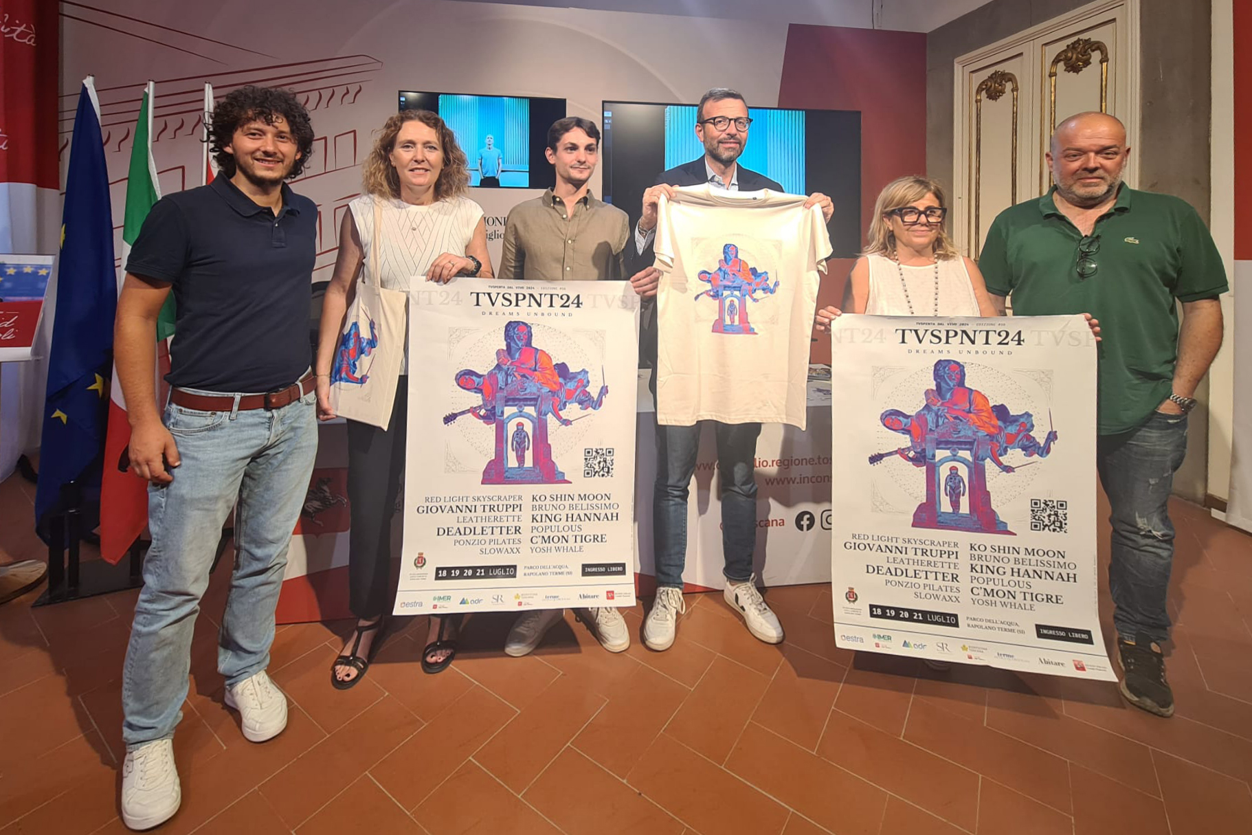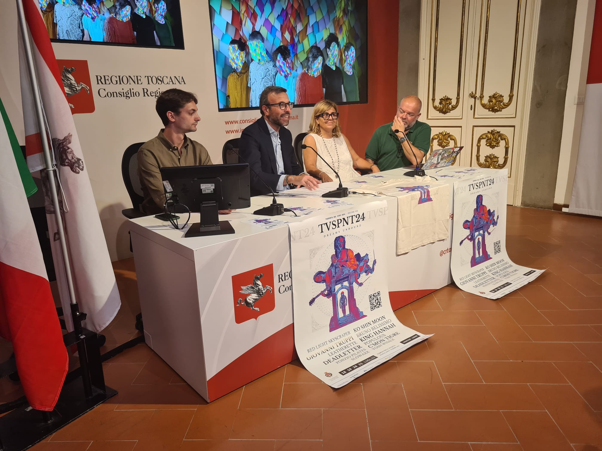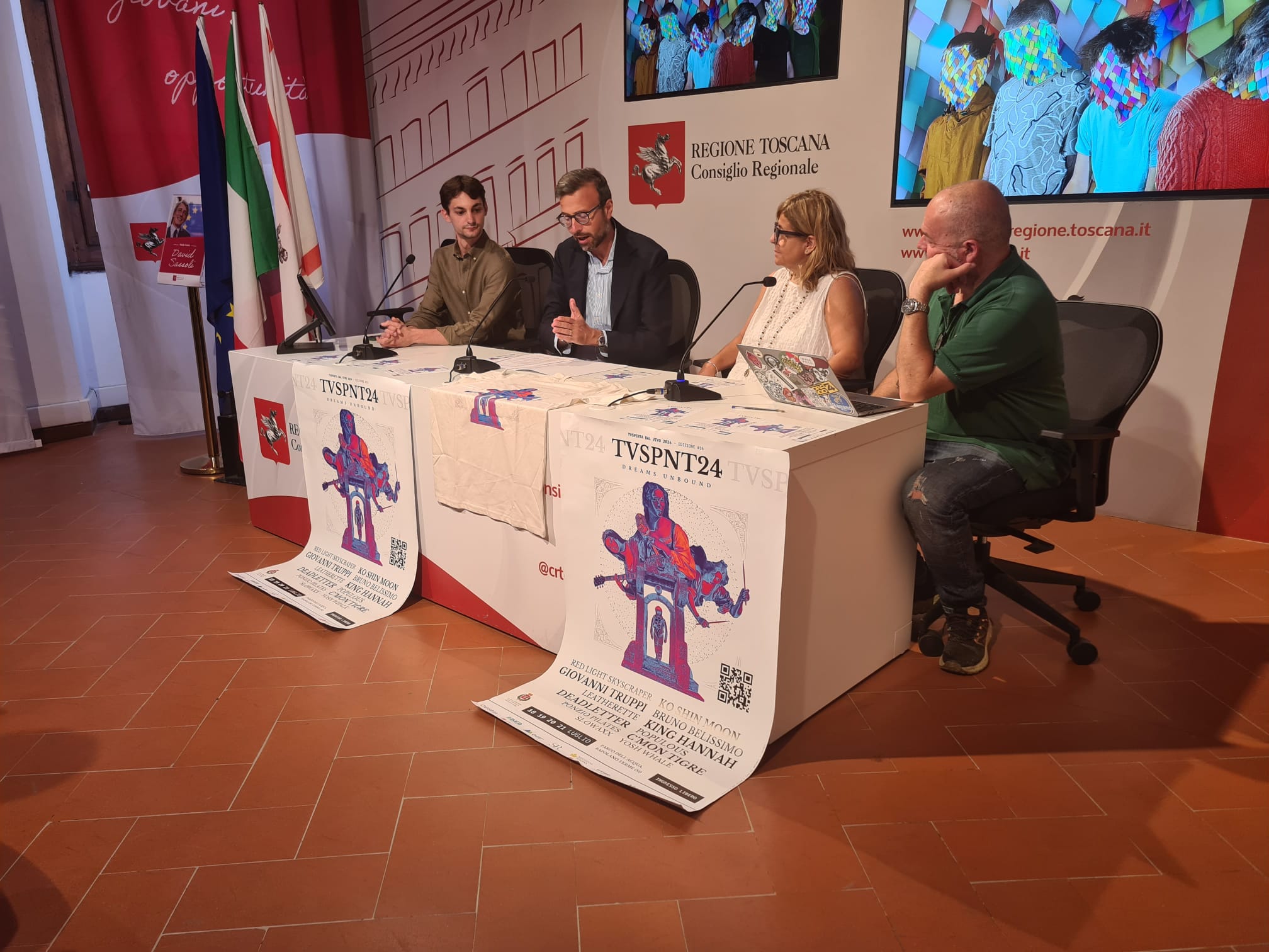 Firenze – Il tanto atteso appuntamento estivo con ‘TVSpenta Dal Vivo’ torna per la sua 16esima edizione e porta al Parco dell’Acqua di Rapolano Terme quattro giorni di musica, cultura e intrattenimento gratuiti. Da giovedì 18 a domenica 21 luglio il festival, con il tema “dreams unbound”, promette di far sognare grandi e piccini grazie a un ricco programma di eventi e numerose collaborazioni. L’evento è stato presentato in una conferenza stampa al Media Center Sassoli a palazzo del Pegaso dal presidente dell’Assemblea toscana Antonio Mazzeo, il vicesindaco di Rapolano Terme Gianna Trapassi, l’assessore all’Ambiente di Rapolano Terme Federico Vigni, per il Comitato Esecutivo Tv Spenta Pietro Folco, per la direzione artistica di TvSpenta Marco Masti. Era presente la consigliera Elena Rosignoli.