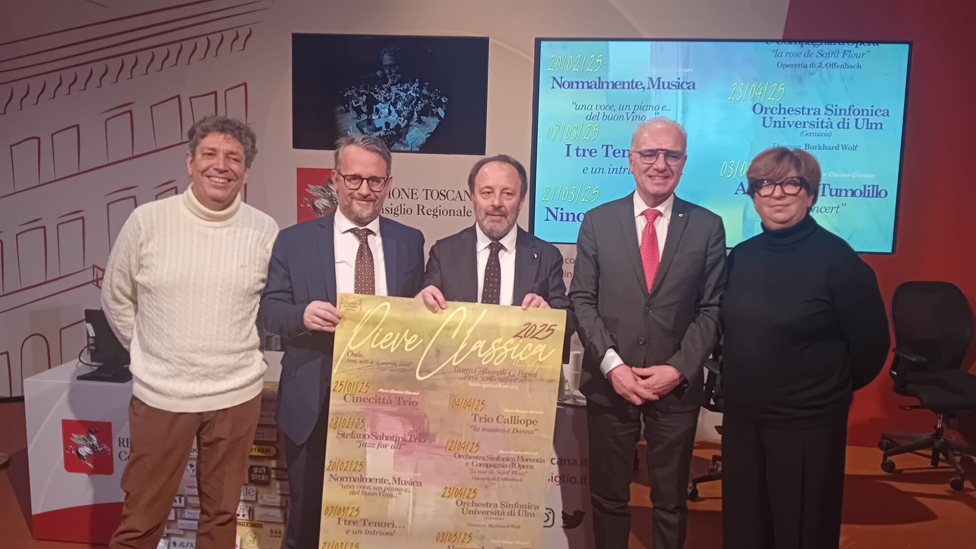 Firenze – Torna, per la sua undicesima edizione, la rassegna musicale ‘Pieve Classica’, organizzata dal comune di Pieve Santo Stefano (Arezzo) nel Teatro Papini. Per presentarla è stata organizzata una conferenza stampa al Media Center Sassoli di palazzo del Pegaso alla quale hanno partecipato il vicepresidente del Consiglio regionale Marco Casucci, il sindaco di Pieve Santo Stefano Claudio Marcelli, l’assessore alla Cultura e Promozione del territorio Luca Gradi, il direttore del Credito Cooperativo di Anghiari e Stia Fabio Pecorari, la direttrice artistica Caterina Seri presidente del Coro Alto Tiberino.