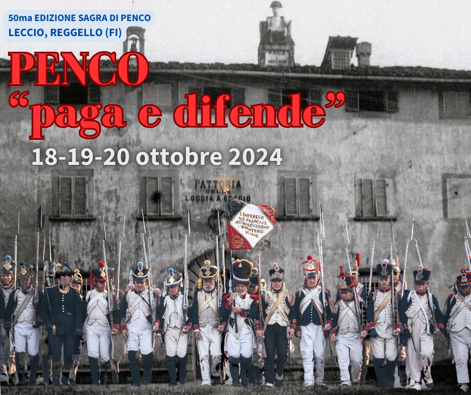 Firenze – Sarà presentata lunedì 14 ottobre alle 12, nel Media Center Sassoli di palazzo del Pegaso, la 50esima edizione della Sagra di Penco in calendario a Leccio di Reggello (Firenze) dal 18 al 20 ottobre. Nei tre giorni focus sul periodo napoleonico in Valdarno e sul personaggio di Penco tra storia e leggenda. “Penco paga e difende” sarà una manifestazione per tutti: tra studi, memorie, cimeli, rievocazioni e giochi.
