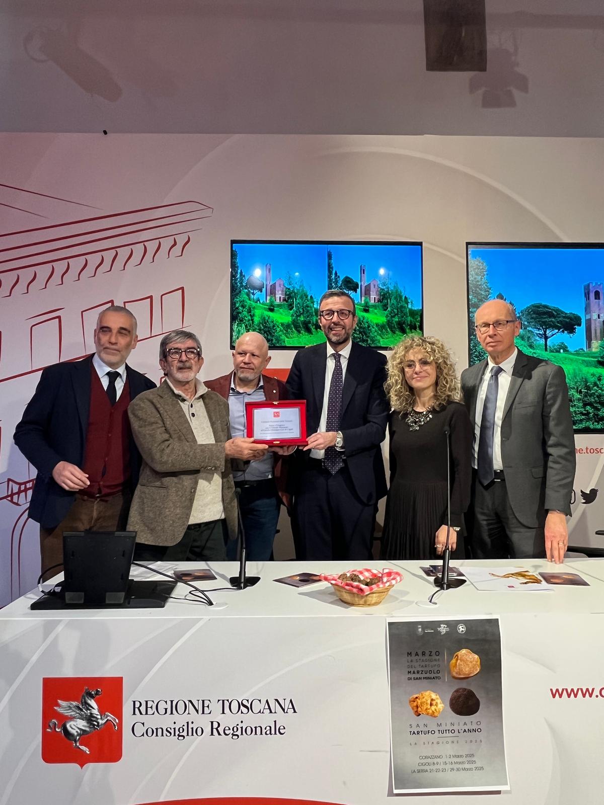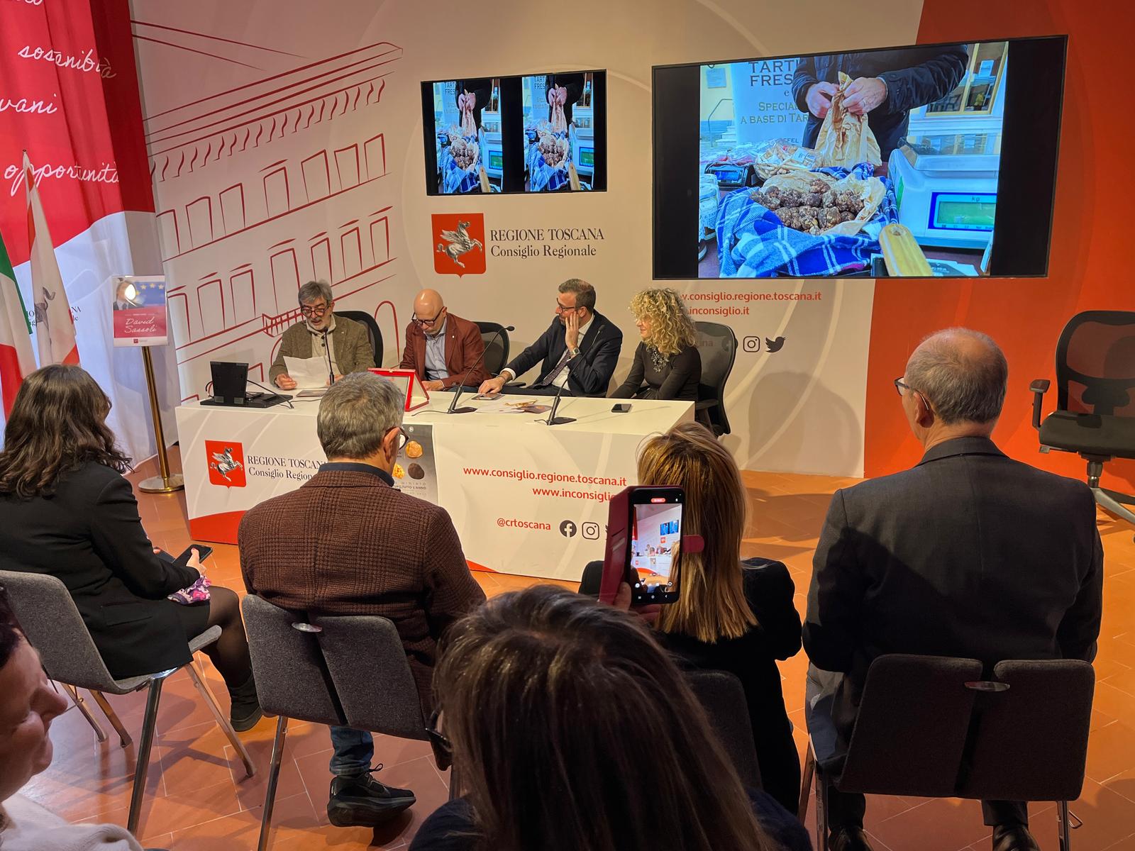 La presentazione delle iniziative nel Media Center Sassoli di palazzo del Pegaso. Consegnata una targa del Consiglio regionale al Circolo ‘G. Gori’ di Cigoli per avere promosso la Toscana attraverso il tartufo per 25 anni