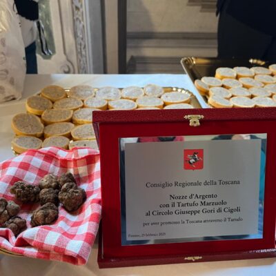 Sono intervenuti alla conferenza stampa il presidente del Consiglio regionale Antonio Mazzeo, il sindaco di San Miniato Simone Giglioli, la presidente della Fondazione San Miniato Promozione, Azzurra Gronchi e il presidente del Circolo ‘G. Gori’ Beppe Latini. Erano presenti i consiglieri regionali Andrea Pieroni e Diego Petrucci. Il presidente del Consiglio regionale Mazzeo ha consegnato una targa al presidente del Circolo ‘G.Gori’ Beppe Latini per le nozze d’argento con il tartufo marzuolo e per avere promosso la Toscana attraverso il tartufo.