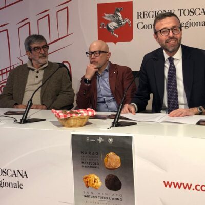 Firenze – Il tartufo marzuolo sarà grande protagonista a San Miniato (Pisa) per tutto il mese di marzo. Si confermano tre le iniziative che renderanno uniche le prossime settimane presentate martedì 25 febbraio nel Media Center Sassoli di palazzo del Pegaso.