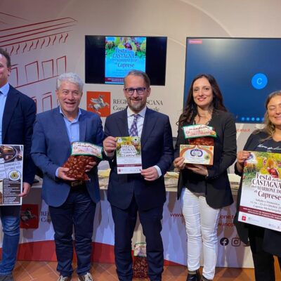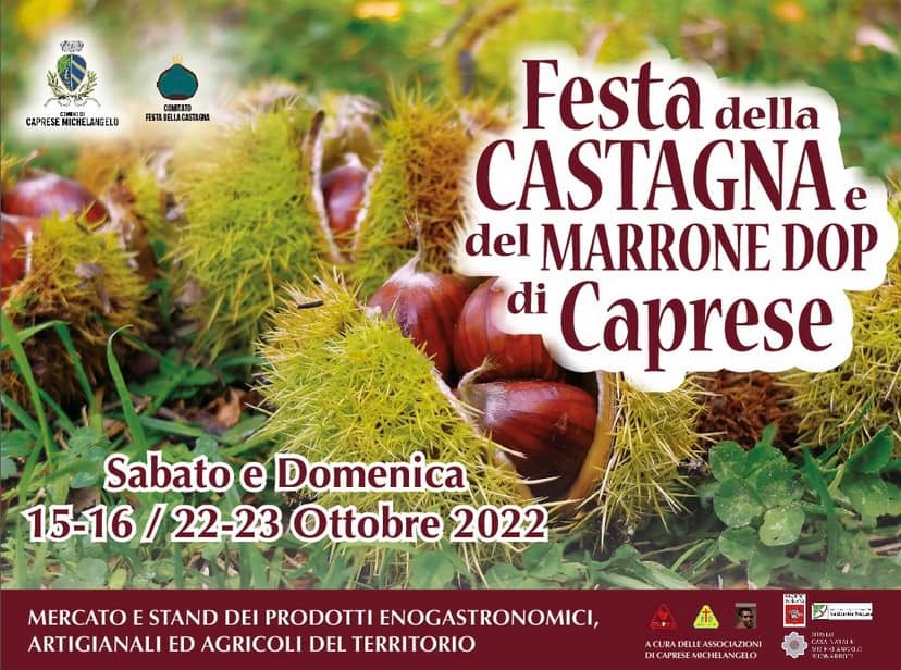 Novità del programma di quest’anno, illustrato dal presidente Mauro Fiorucci e da Maria Teresa Baroni, rispettivamente presidente e membro del comitato Festa della castagna e del marrone dop di Caprese Michelangelo, saranno il Palio della castagna (a cura della Polisportiva Michelangelo), domenica 16 ottobre, e il cooking show ‘Il marrone in festa’, un’ ‘agrisfida’ ai fornelli che domenica 23 ottobre coinvolgerà i sindaci della Valtiberina.