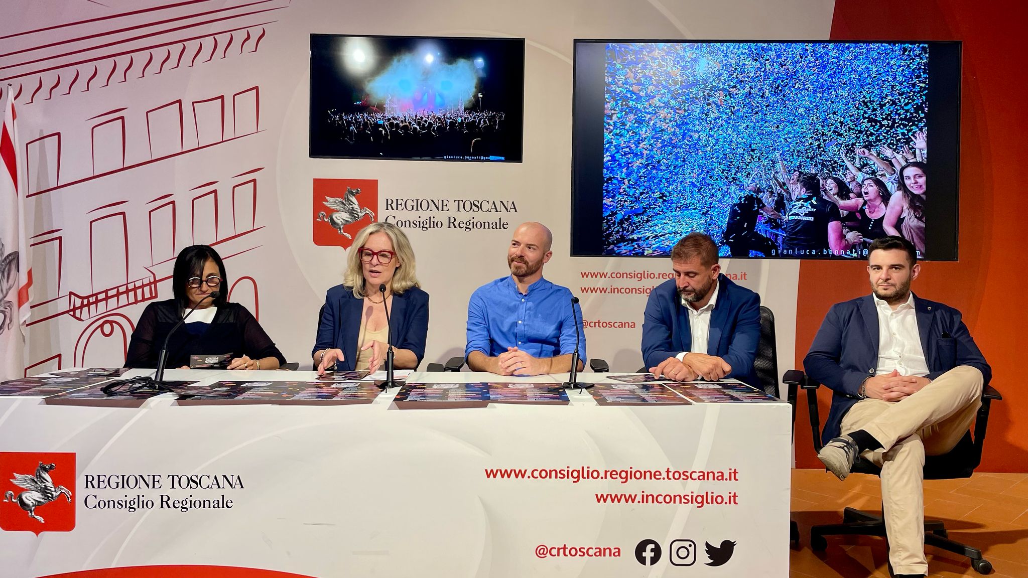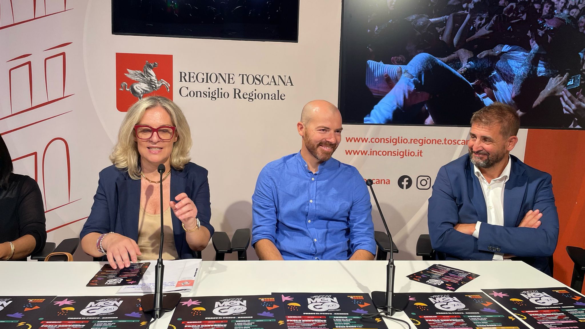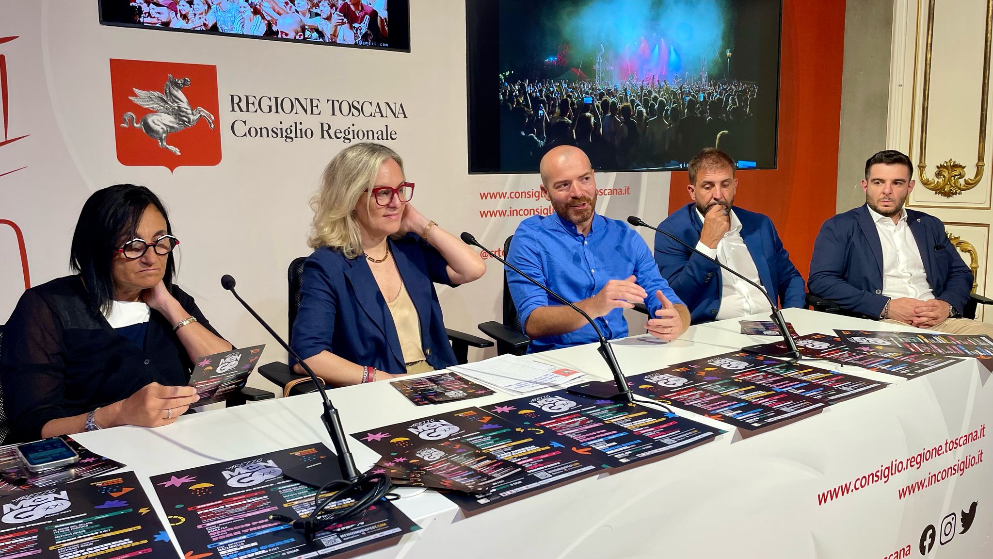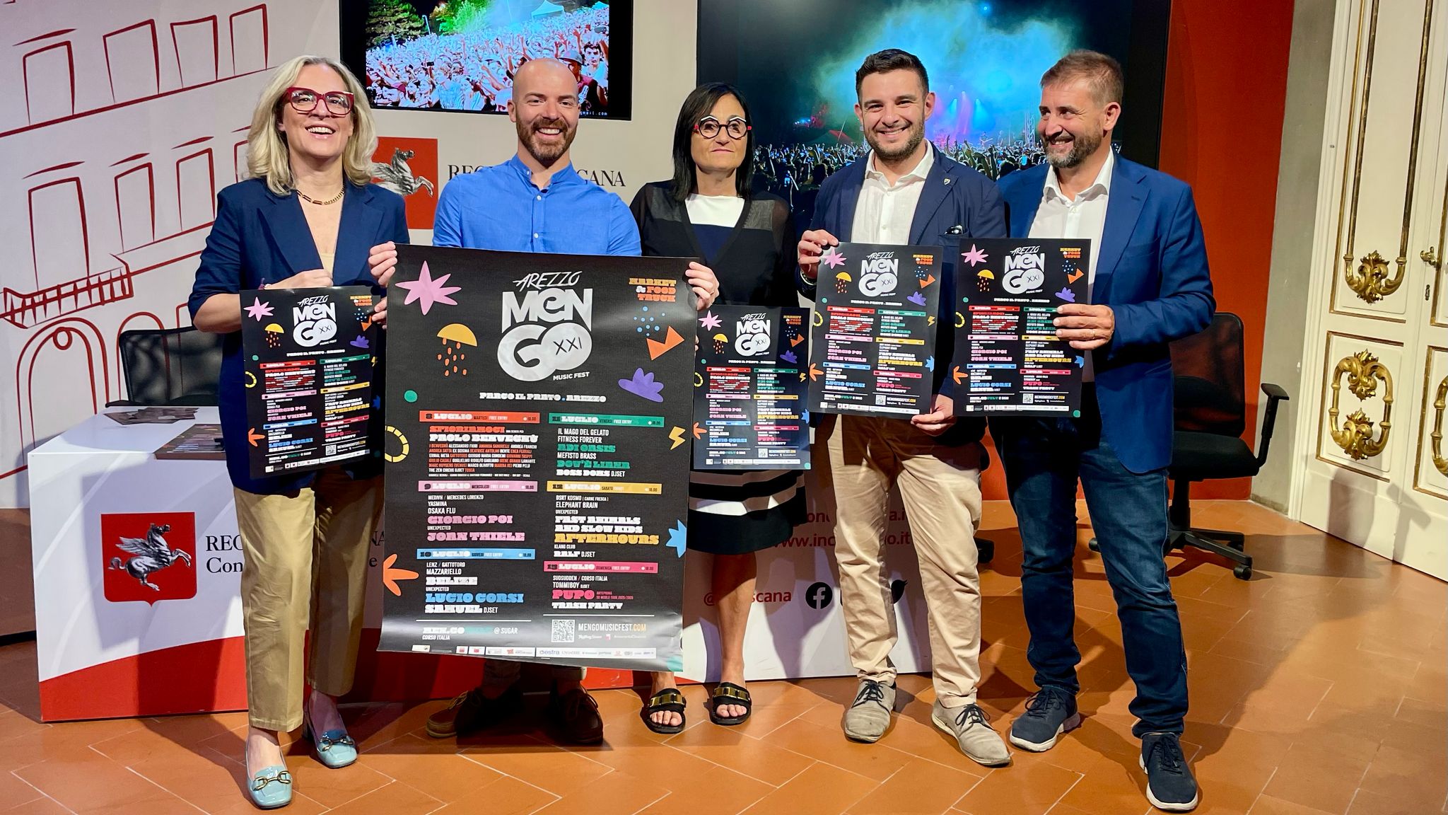 Firenze – Al Media Center Sassoli di palazzo del Pegaso, si è svolta la conferenza stampa di presentazione del Mengo Music Fest che si svolgerà ad Arezzo. Sono intervenuti: la consigliera segretario dell’ufficio di presidenza Federica Fratoni; la consigliera regionale Lucia De Robertis; l’assessore alle politiche giovanili del comune di Arezzo Federico Capecchi; il direttore artistico Paco Mengozzi; l’amministratore di Estra Nicola Ciolini.