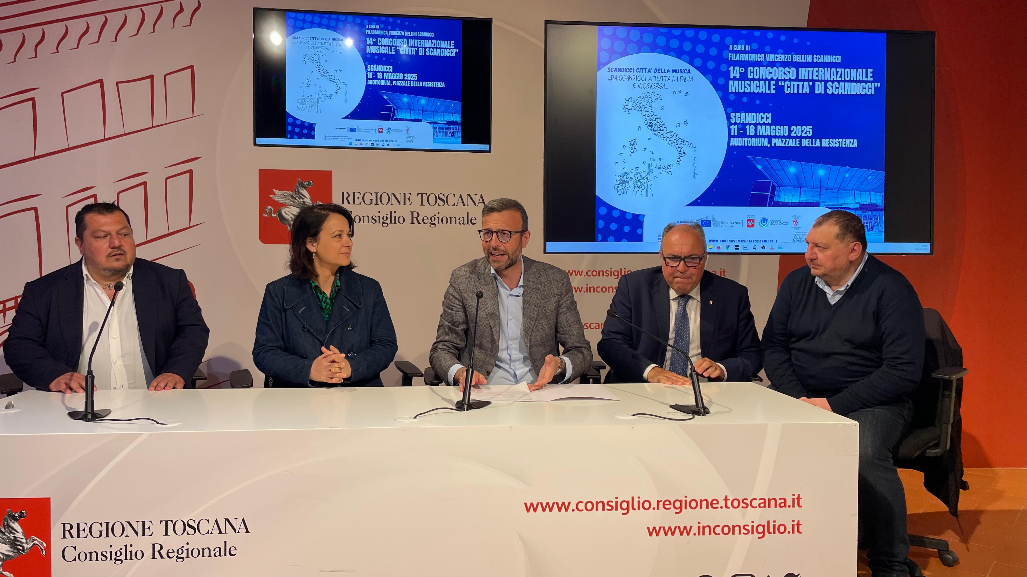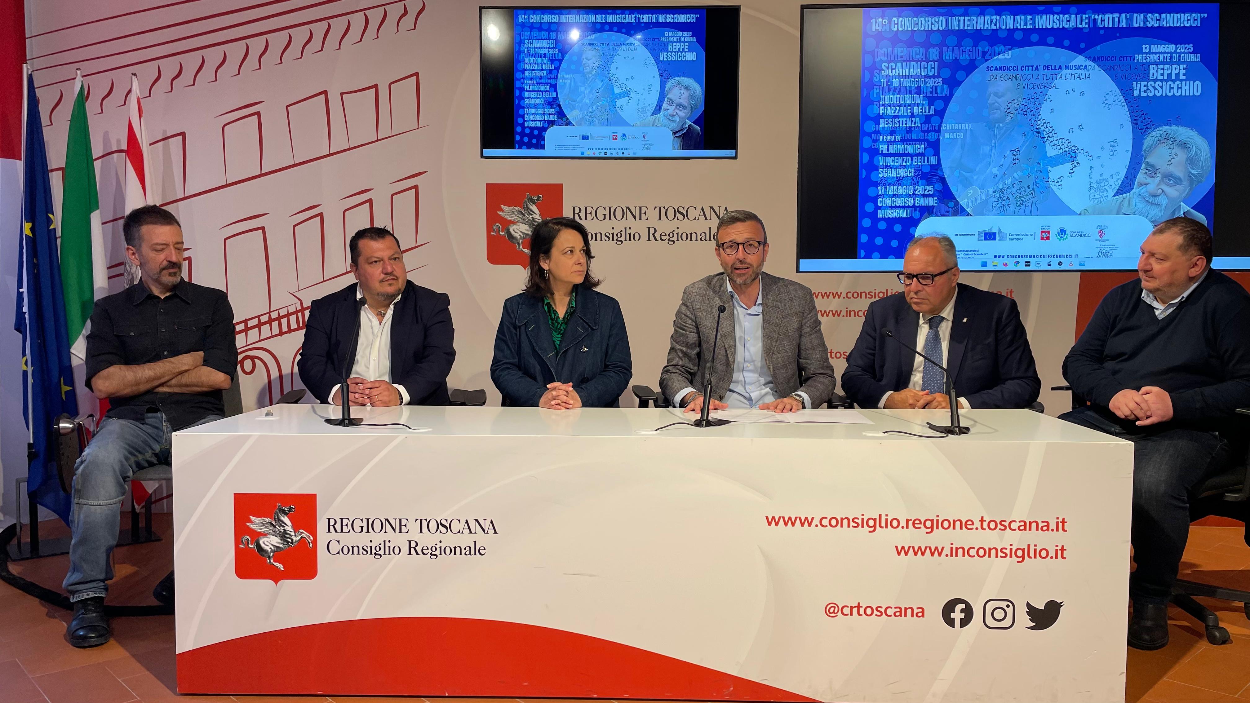 All’incontro con gli organi d’informazione hanno preso parte il presidente del Consiglio regionale Antonio Mazzeo, il consigliere regionale Fausto Merlotti, la sindaca di Scandicci, Claudia Sereni, il presidente della Filarmonica ‘Vincenzo Bellini’ Luciano Marino e il chitarrista, produttore e compositore Giuseppe Scarpato.