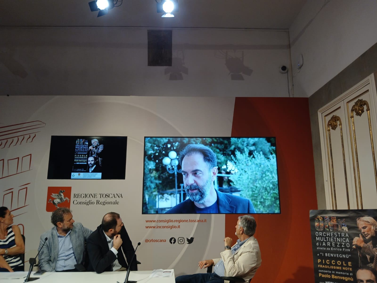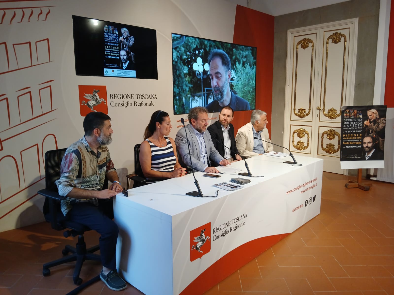 “Come Consiglio regionale siamo particolarmente felici ed orgogliosi di ospitare questo evento che ha molte caratteristiche di straordinarietà”. Così il segretario questore dell’Ufficio di Presidenza dell’Assemblea toscana Francesco Gazzetti, dando il “la” alla conferenza stampa a palazzo del Pegaso: “Il concerto non solo ricorderà un artista come Paolo Benvegnù, ma unirà anche due bellissimi territori della nostra Toscana, nel nome della musica e della cultura”.