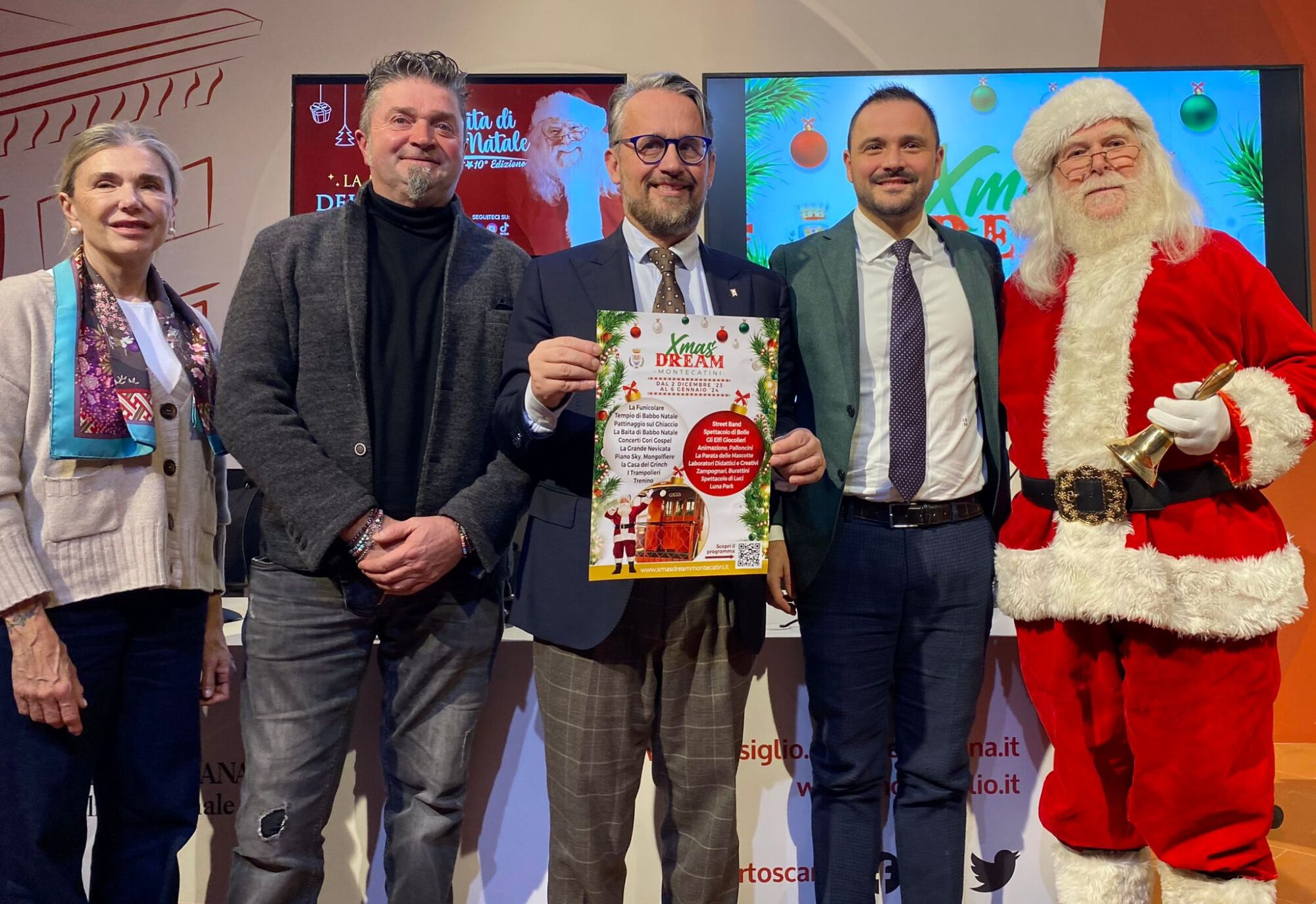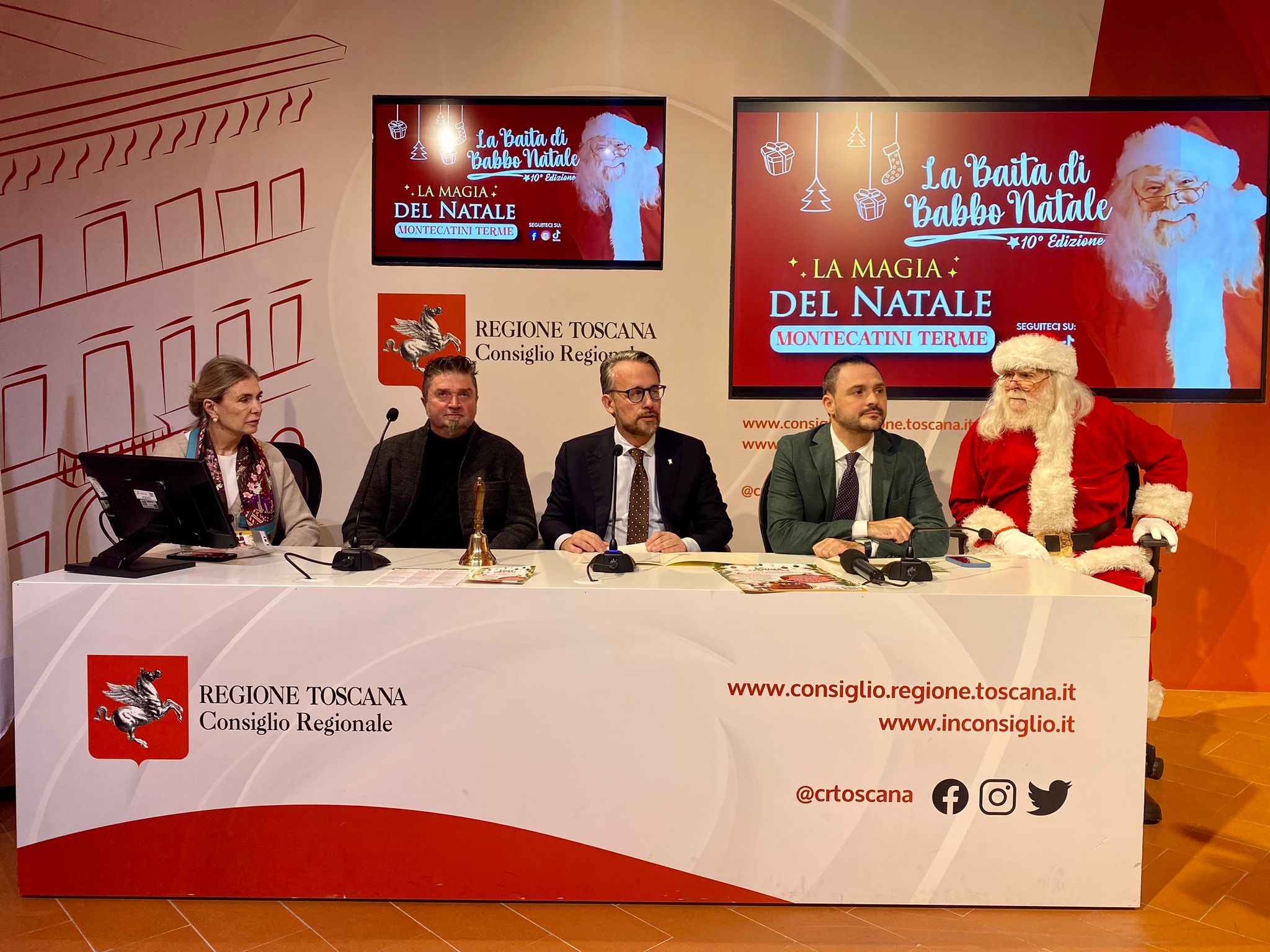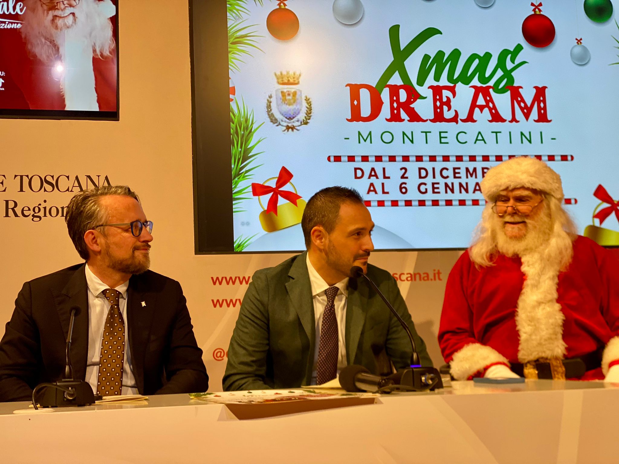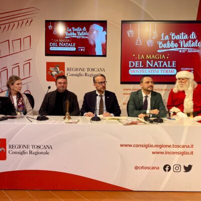 Firenze – Sarà Babbo Natale nella sua baita al mercato coperto il protagonista degli eventi dedicati alle festività a Montecatini Terme. Al Media Center Sassoli si è tenuta la conferenza stampa di presentazione delle iniziative organizzate sia dall’amministrazione comunale sia da privati per le festività. All’incontro sono intervenuti il vicepresidente Marco Casucci, il sindaco e l’assessora al turismo e sport di Montecatini Terme Luca Baroncini e Alessandra Bartolozzi, l’organizzatore della Baita di Babbo Natale Paolo Grossi. Alla conferenza era presente anche il consigliere regionale Marco Landi.