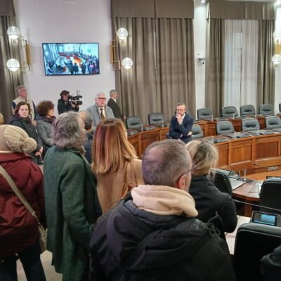 Nella sala Gonfalone di palazzo del Pegaso, si sono tenuti i saluti istituzionali del presidente del Consiglio regionale Antonio Mazzeo e del vicepresidente Stefano Scaramelli, a nome dell’Ufficio di presidenza, con il portavoce dell’opposizione, Marco Landi, dopo che lo stesso presidente si era fatto cicerone, illustrando ai visitatori il funzionamento delle sedute dell’Assemblea legislativa e la dislocazione, negli scranni della Sala consiliare, dei vertici istituzionali, della Giunta regionale, dei gruppi di maggioranza e di quelli delle opposizioni. “Raggiungiamo oggi uno degli obiettivi che mi ero posto come presidente e ci eravamo posti come Ufficio di presidenza: rendere il Consiglio regionale un luogo sempre più aperto per le cittadine e i cittadini della Toscana”, ha dichiarato Mazzeo. “Ripartiamo da questa Festa della Toscana, che ha visto esaurite in poche ore le domande di partecipazione e non abbiamo potuto accontentare tanti altri – ha aggiunto Mazzeo –. Riapriremo il palazzo il 14 dicembre, ogni cittadino dovrebbe sentirsi più vicino a noi. La Festa della Toscana non è soltanto il 30 novembre, in tanti luoghi della Toscana si svolgeranno tante iniziative, abbiamo aumentato le risorse da mettere a disposizione dei Comuni, delle associazioni, delle scuole. Quella che lasciamo con l’ultima edizione di questa legislatura è una Festa della Toscana più popolare. Non posso che essere grato e orgoglioso di quello che abbiamo portato avanti”, ha concluso Mazzeo.