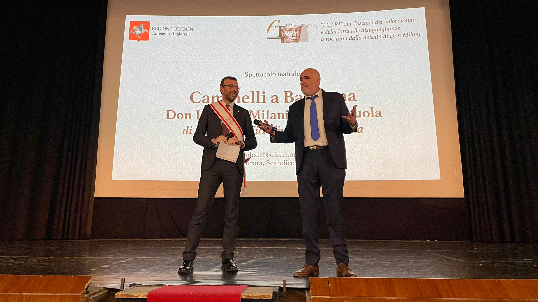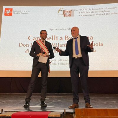 Firenze – Lo spettacolo teatrale ‘Cammelli a Barbiana’ di Francesco Niccolini e Luigi D’Elia tratto dal libro ‘La scuola più bella che c’è. Don Milani, Barbiana e i suoi ragazzi’ ha chiuso il programma delle iniziative del Consiglio regionale per la Festa della Toscana dedicata quest’anno a Don Lorenzo Milani nel centenario dalla nascita. I CARE, la Toscana dei valori umani e della lotta alle diseguaglianze è stato il tema dell’edizione 2023.