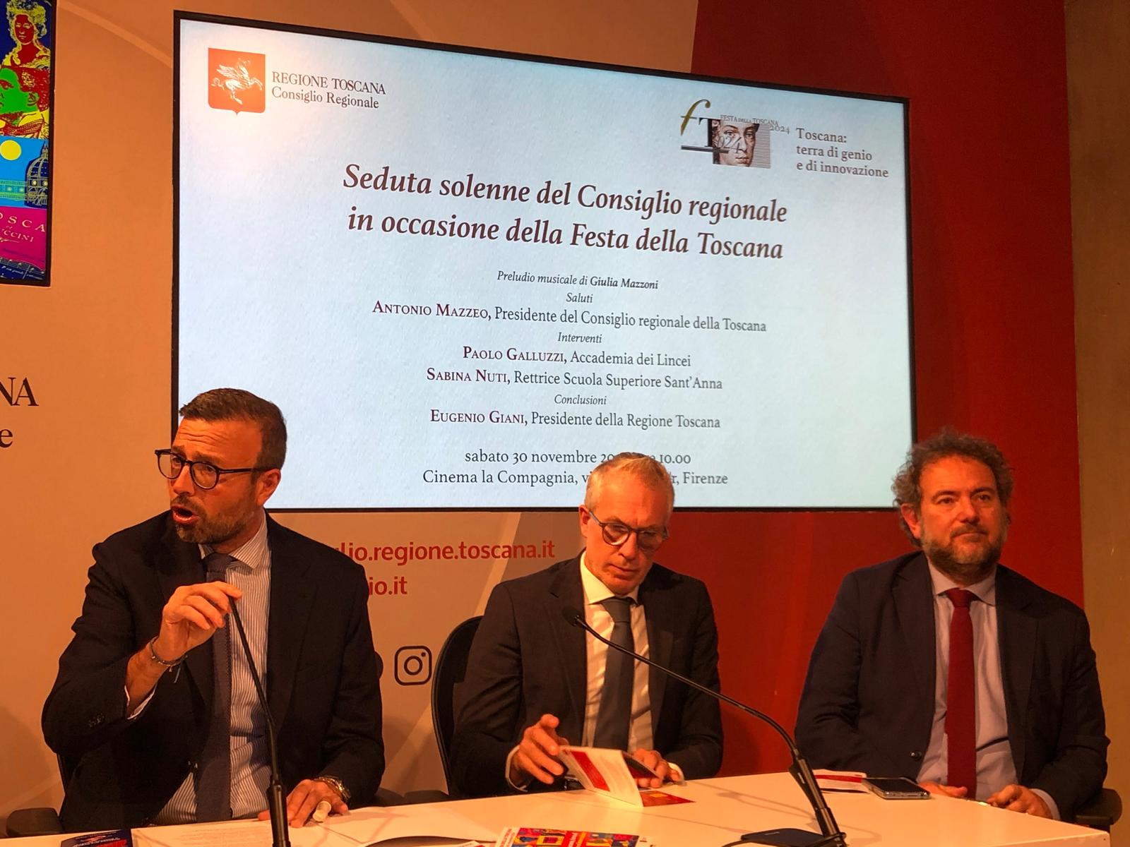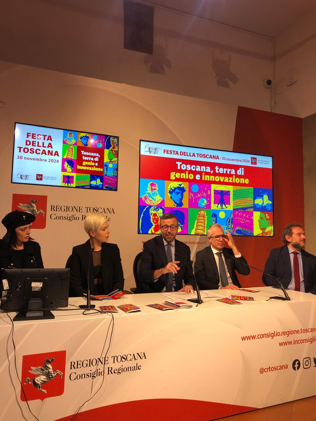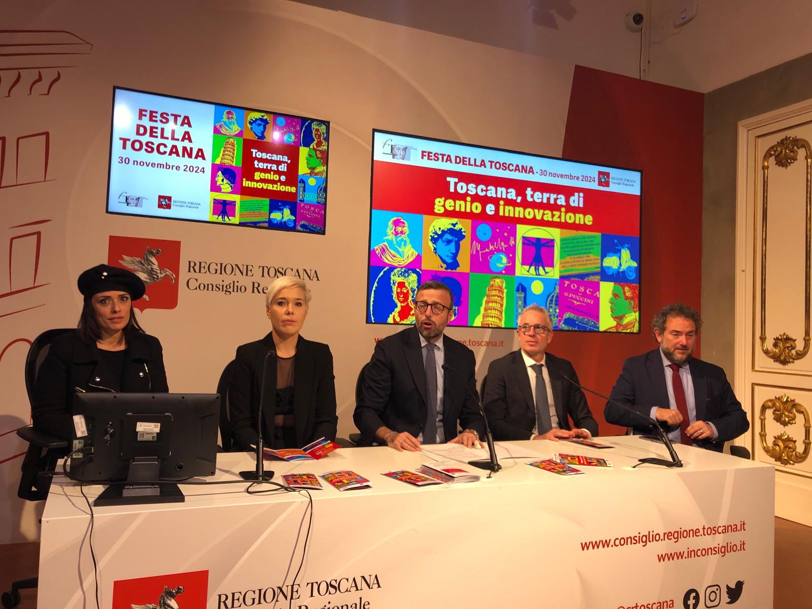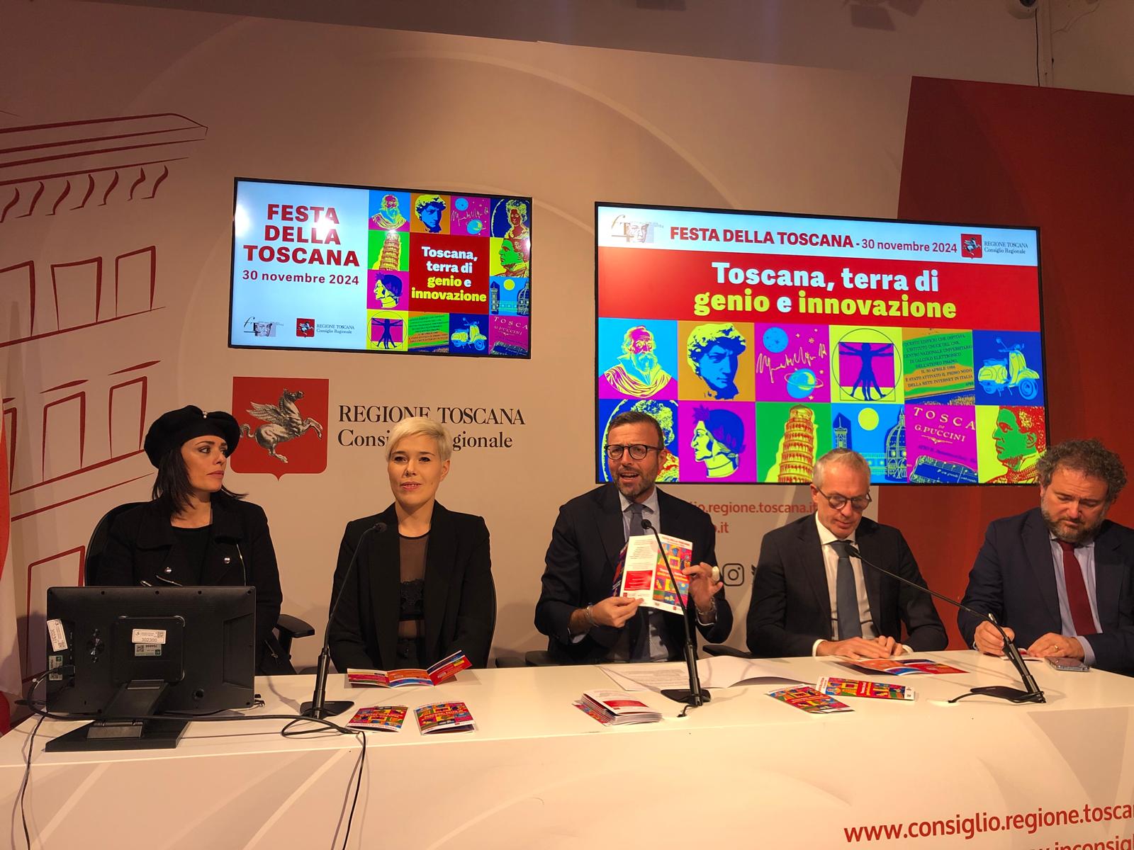 Le novità di questa edizione sono state presentate dal presidente del Consiglio regionale Antonio Mazzeo: “Sono felice quest’anno di parlare di un tema a me caro, il genio e l’innovazione. La Toscana è terra di arte, cultura e bellezza, ma è anche una terra di innovazione. Più innovazione vuol dire più diritti. Il tema attorno al quale abbiamo costruito in questi anni la Festa della Toscana. Siamo partiti con l’abolizione della pena di morte, che è alla base di questa Festa, abbiamo sviluppato il tema della libertà, quello di dare voce a chi ha meno voce. Abbiamo combattuto le parole d’odio. La scorsa edizione è stata dedicata a Don Milani e nel suo ‘I CARE’, me ne prendo cura, in quel tendersi la mano, c’è un pezzo della nostra idea di Toscana. Ma oltre a tendere la mano bisogna guardare con speranza e ottimismo al futuro e questo è il messaggio di speranza che vogliamo trasmettere alle cittadine e ai cittadini. La Toscana è una terra che nel tempo e pensiamo a Galileo, a Michelangelo e a Leonardo ha cambiato il modo di vivere in tutto il mondo”.