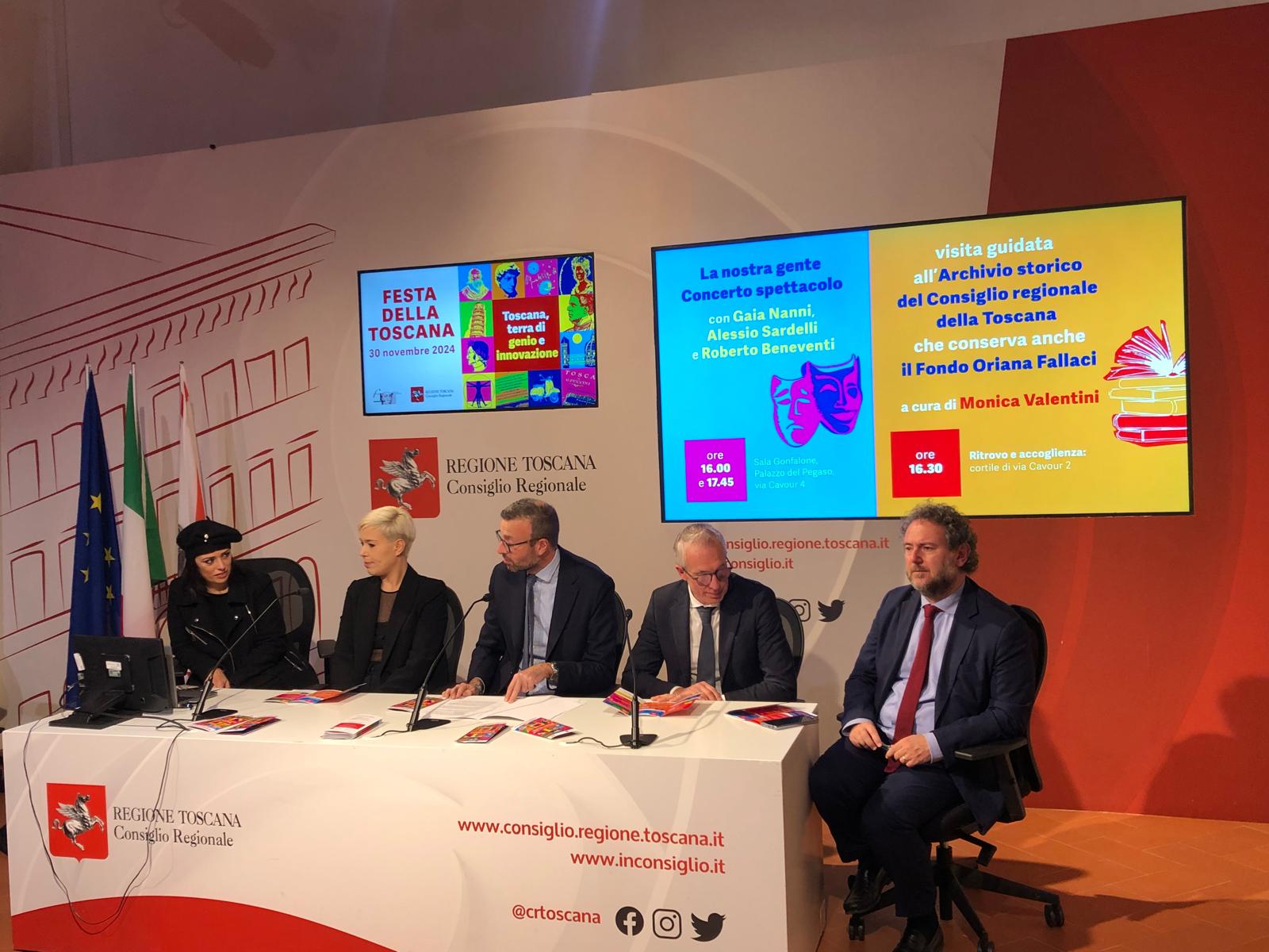 Firenze – Si moltiplicano le iniziative per festeggiare la venticinquesima edizione della Festa della Toscana, quest’anno dedicata al tema “Toscana, terra di genio e innovazione”. Una serie di eventi e manifestazioni presentati in una conferenza stampa a palazzo del Pegaso che, come da tradizione, saranno aperti con la seduta solenne del Consiglio regionale, alle 10, del 30 novembre nel cinema ‘La Compagnia’ a via Cavour 50/r a Firenze.
