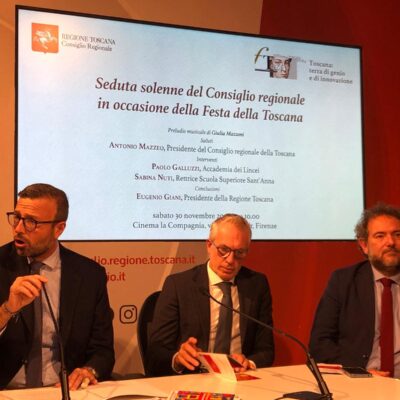 La giornata del 30 novembre si aprirà, alle 10, con la seduta solenne del Consiglio regionale presso il cinema La Compagnia, a cui sono stati invitati tutti i sindaci toscani, i componenti del Parlamento regionale degli studenti e le studentesse e gli studenti degli ultimi anni delle scuole superiori, e sarà arricchita dal preludio musicale di Giulia Mazzoni e dagli interventi di personalità illustri. Paolo Galluzzi, storico della scienza di fama internazionale e membro dell’Accademia dei Lincei e dell’Accademia Reale svedese e Sabina Nuti, rettrice della Scuola Superiore Sant’Anna di Pisa, economista e ricercatrice di rilievo nel campo della valutazione delle performance dei sistemi sanitari, impegnata a promuovere l’innovazione e l’efficienza nei servizi pubblici. Sono previsti gli interventi del presidente del Consiglio regionale Mazzeo e della Giunta Eugenio Giani.