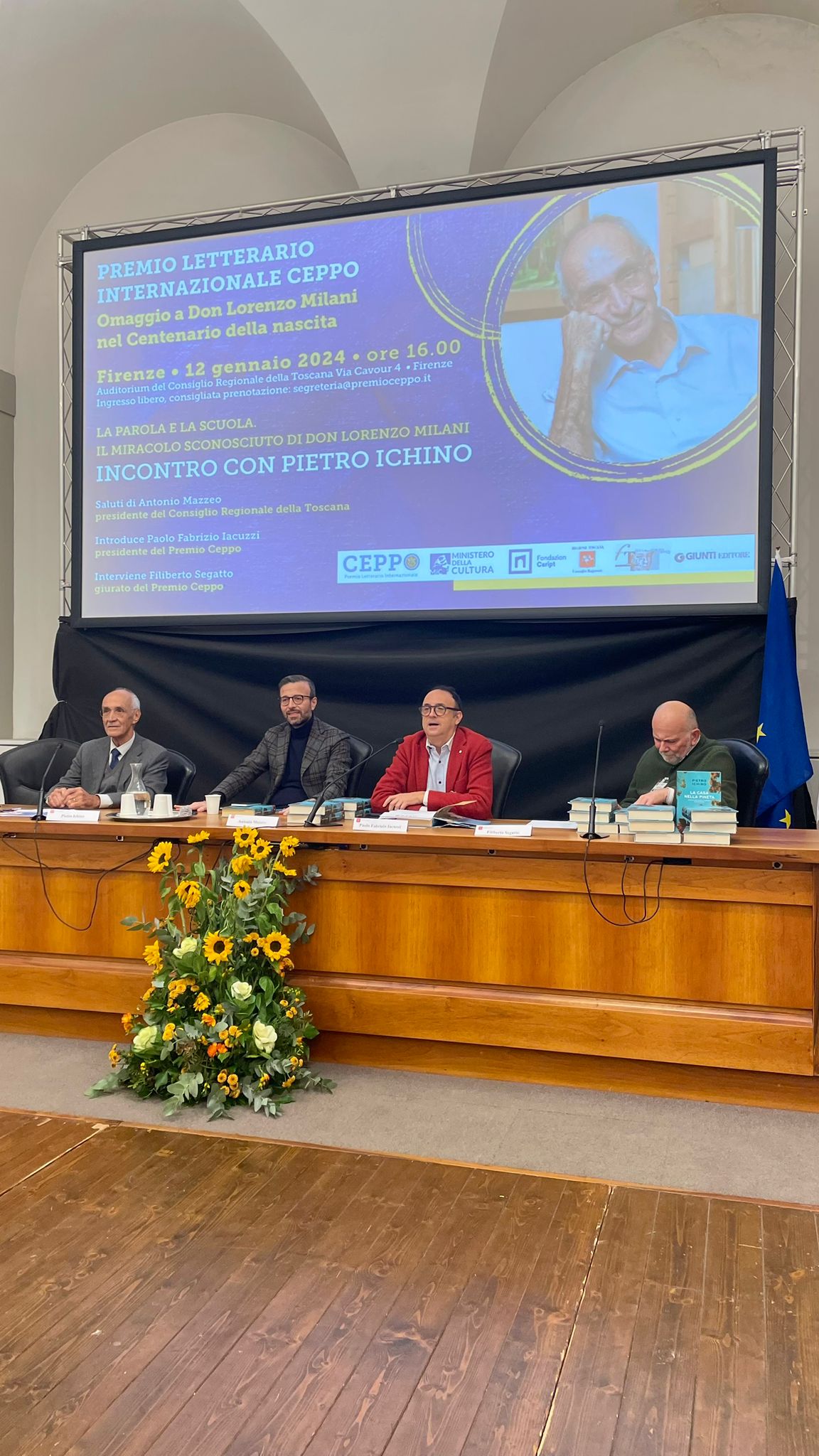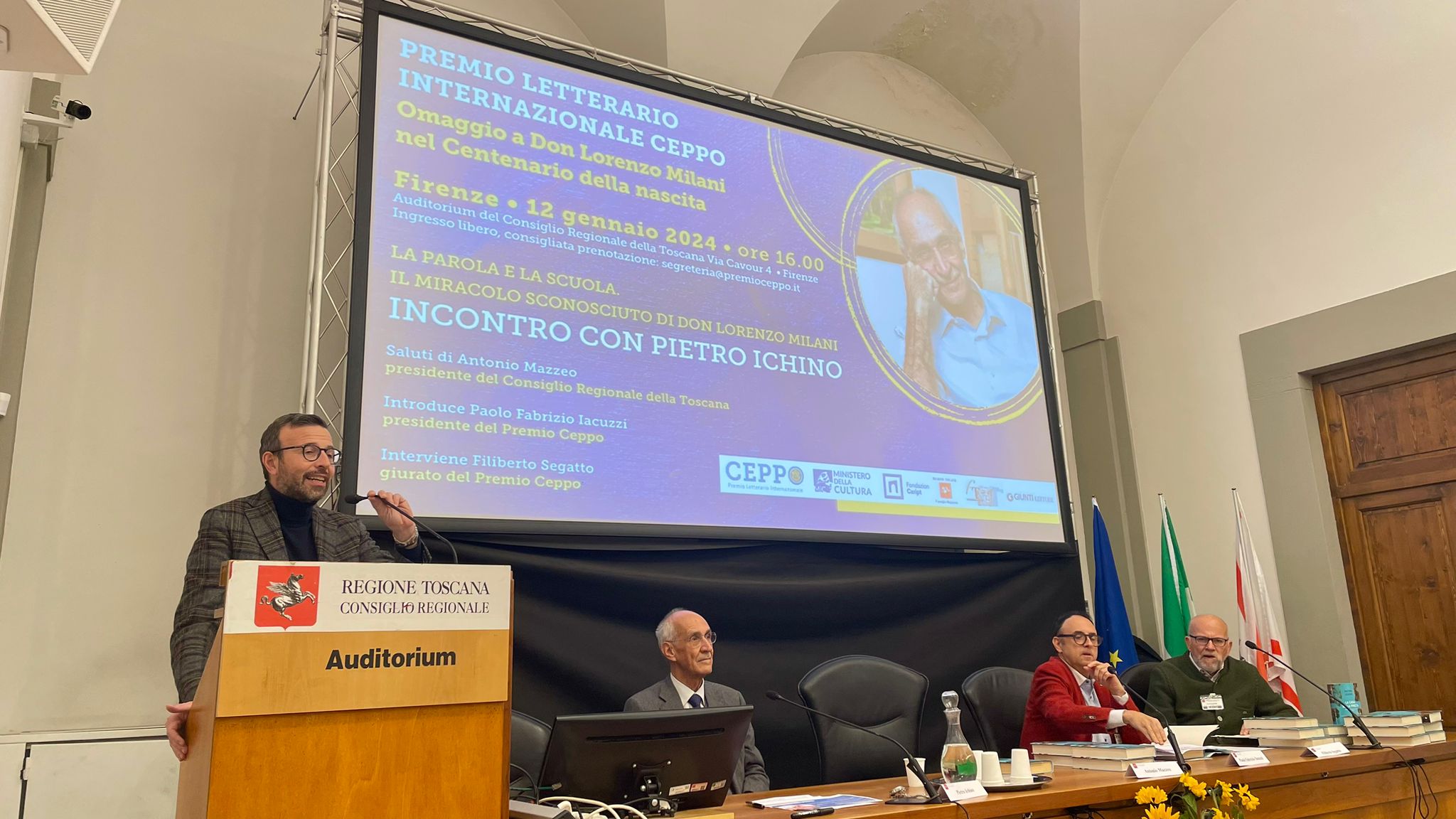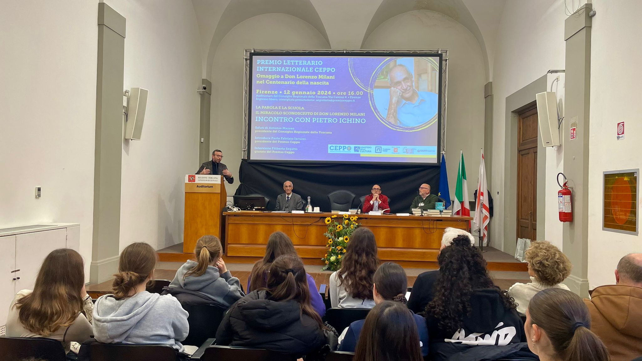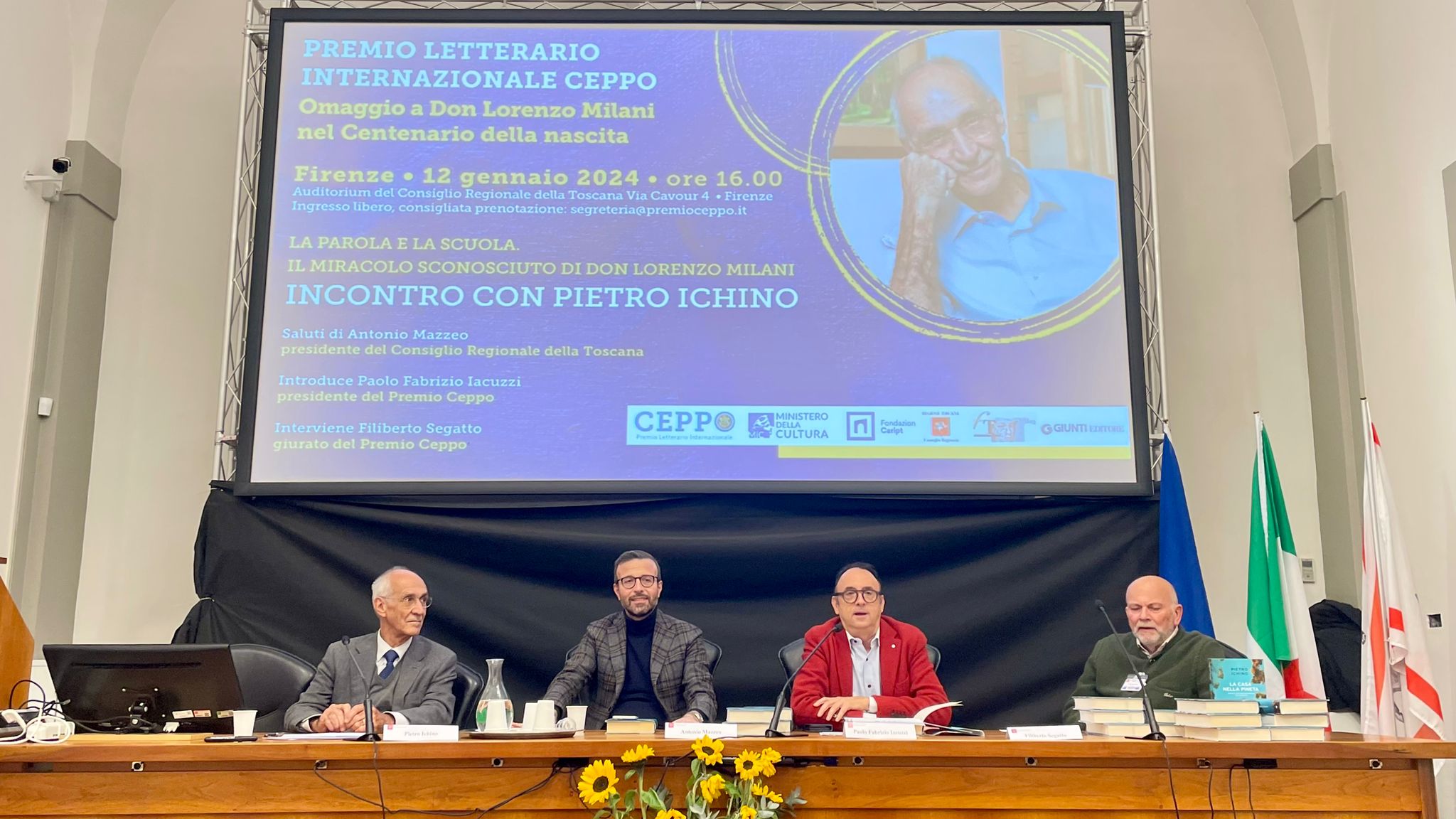 Il presidente del Premio Ceppo Paolo Fabrizio Iacuzzi, che ha preso parte all’incontro anche in rappresentanza di Giunti editore, insieme al giurato del Premio Ceppo, Filiberto Segatto, ha ricordato che “Il premio Ceppo ha cominciato a lavorare con i ragazzi delle scuole di Firenze e Pistoia su un progetto educativo, per il quale il professor Ichino è un testimone importante: aveva l’età di questi ragazzi quando conobbe don Milani nella sua gita a Milano. Anche la radice etica della scelta personale di Ichino, influenzata da don Milani, è molto importante da trasmettere”.