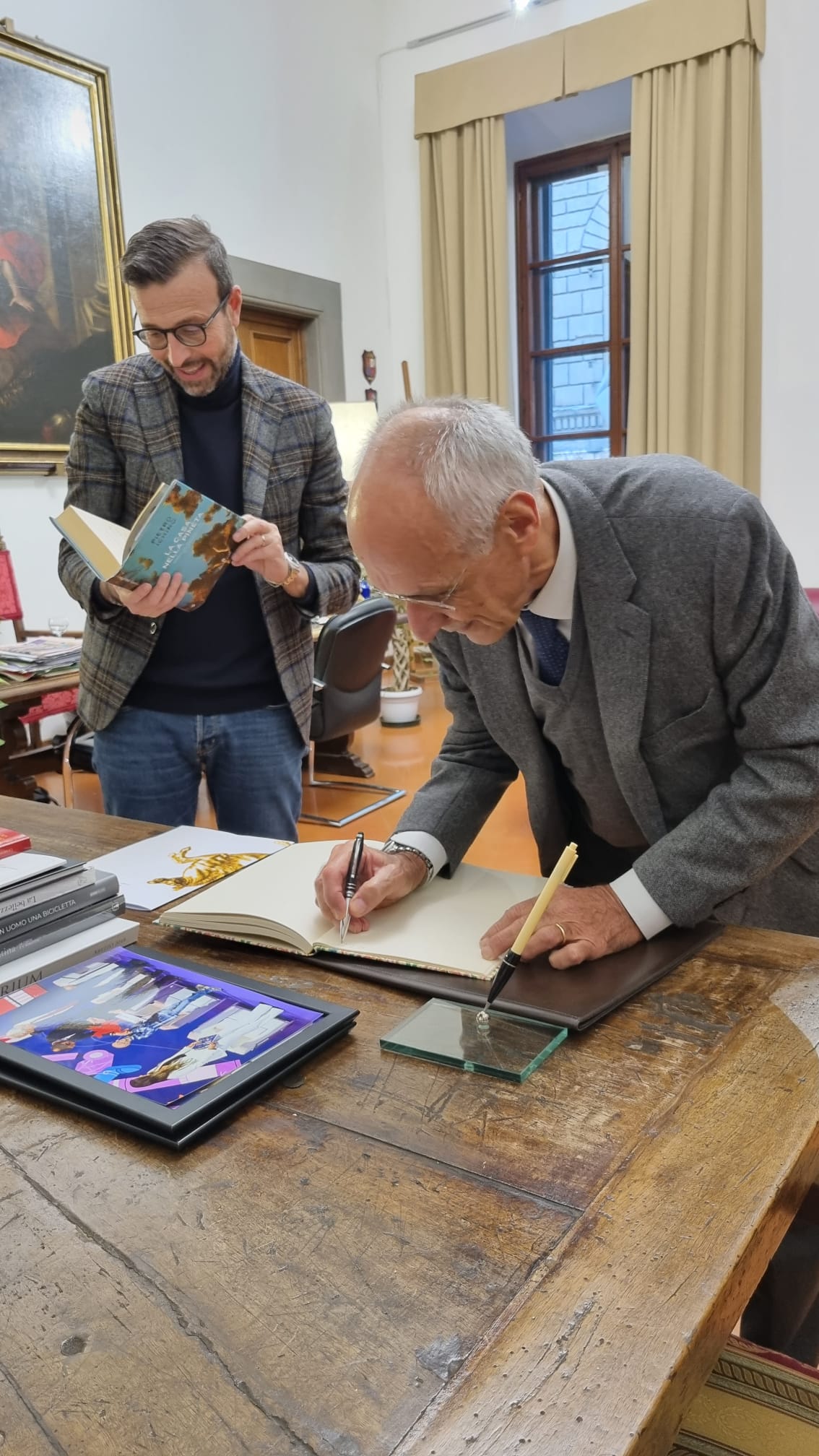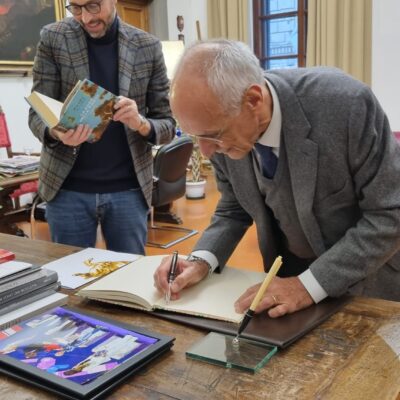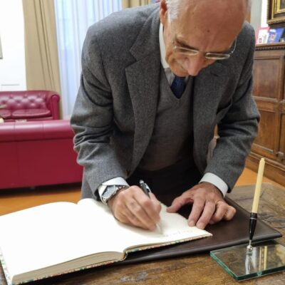Prima dell’evento in Auditorium, il presidente Antonio Mazzeo, ha ricevuto Pietro Ichino nel suo studio per un breve incontro privato, al termine del quale Ichino ha firmato il Libro degli ospiti del Consiglio regionale.