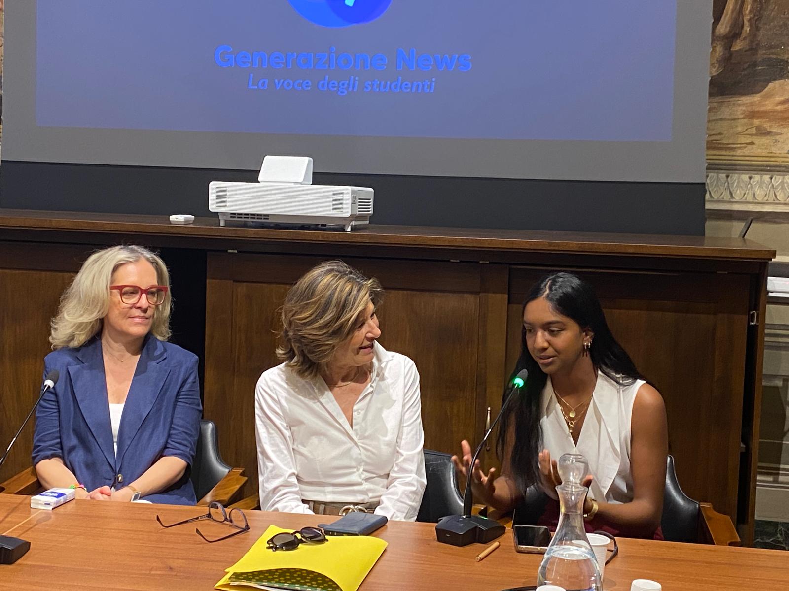 Corso Campertogni ha parlato di ‘Generazione News’ come “un’esperienza bellissima, un trampolino per lavori futuri”. “Ho iniziato quasi un anno fa e non sapevo editare un video, tantomeno avevo idea di come si conducesse un’intervista. Adesso invece mi occupo delle interviste, perché amo essere in contatto con le persone”. Mentre la co-fondatrice Sole Shasika Weerasinghe ha raccontato come il percorso che ha portato ‘Generazione News’ a diventare una testata ufficiale a livello regionale non sia stato scevro di difficoltà. “Ma noi non ci siamo arresi – ha ricordato – Ed è bello oggi vedere che il progetto ha preso il volo e sta crescendo grazie a tutti gli studenti che ci credono. Aver trasmesso questa passione mi rende felice”.