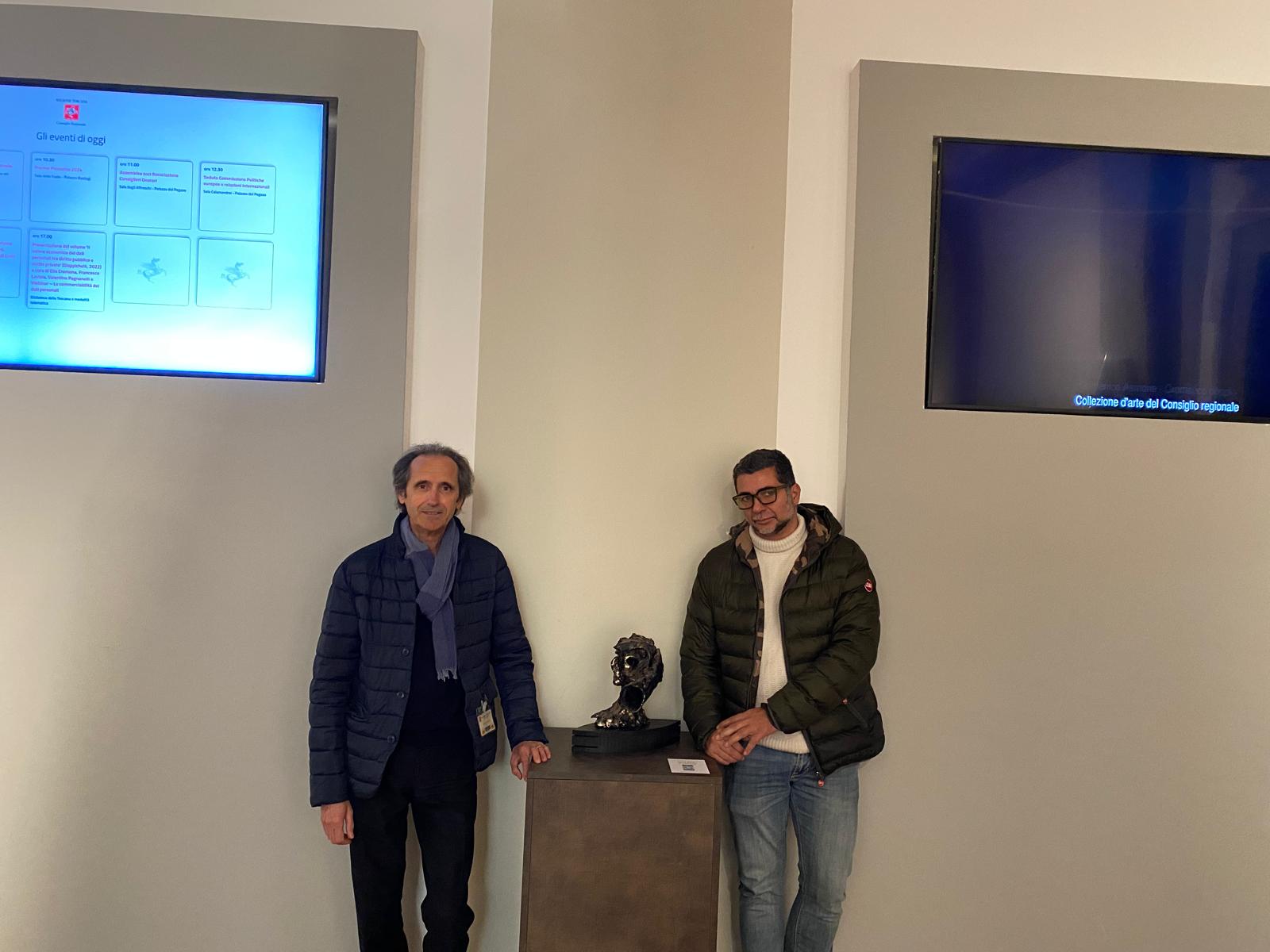 Un messaggio di denuncia, ma anche di speranza, che si fa strada attraverso un’opera simbolo. “La mia scultura rappresenta uno schiaffo inferto sul volto femminile, in generale dunque la violenza sulle donne – spiega l’autore – ma anche la possibilità, da parte delle donne, di dire mai più, di vedere un futuro, una prospettiva. È importante che questo tema venga affrontato anche nell’ambito familiare, nelle scuole, nelle istituzioni, e che il messaggio contro la violenza non si limiti a una giornata, ma che diventi stimolo per un cambiamento culturale nella società, che coinvolga anche le istituzioni che si fanno interpreti e portavoce di questa esigenza, così come sta facendo il Consiglio regionale oggi esponendo la mia opera”.