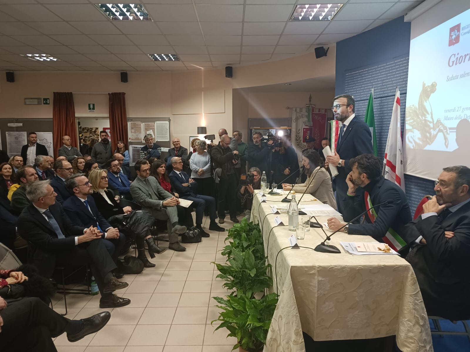 Anche per questo Mazzeo ha confermato, una volta di più, il valore dei Viaggi della Memoria. “A noi Istituzioni è affidato un compito importante: non solo ricordare ma formare alla memoria. È come un seme che va coltivato perché possa germogliare. Spero davvero che dal prossimo anno, magari anche con un contributo diretto del Consiglio regionale, possa ripartire il viaggio con il Treno della Memoria perché non c’è esperienza più forte di vivere in prima persona ciò che è stato quell’orrore”. E prendendo sempre a prestito le parole di Liliana Segre in Senato ha ricordato: “Non si tratta di una gita. Andare in quei luoghi deve essere paragonato a un pellegrinaggio, di fede o laico che sia. Un momento in cui si ricordano milioni di morti, in cui si riflette in silenzio e in cui ognuno di noi a prescindere dall’età, deve tornare con la consapevolezza che fatti del genere non possono mai più accadere”.