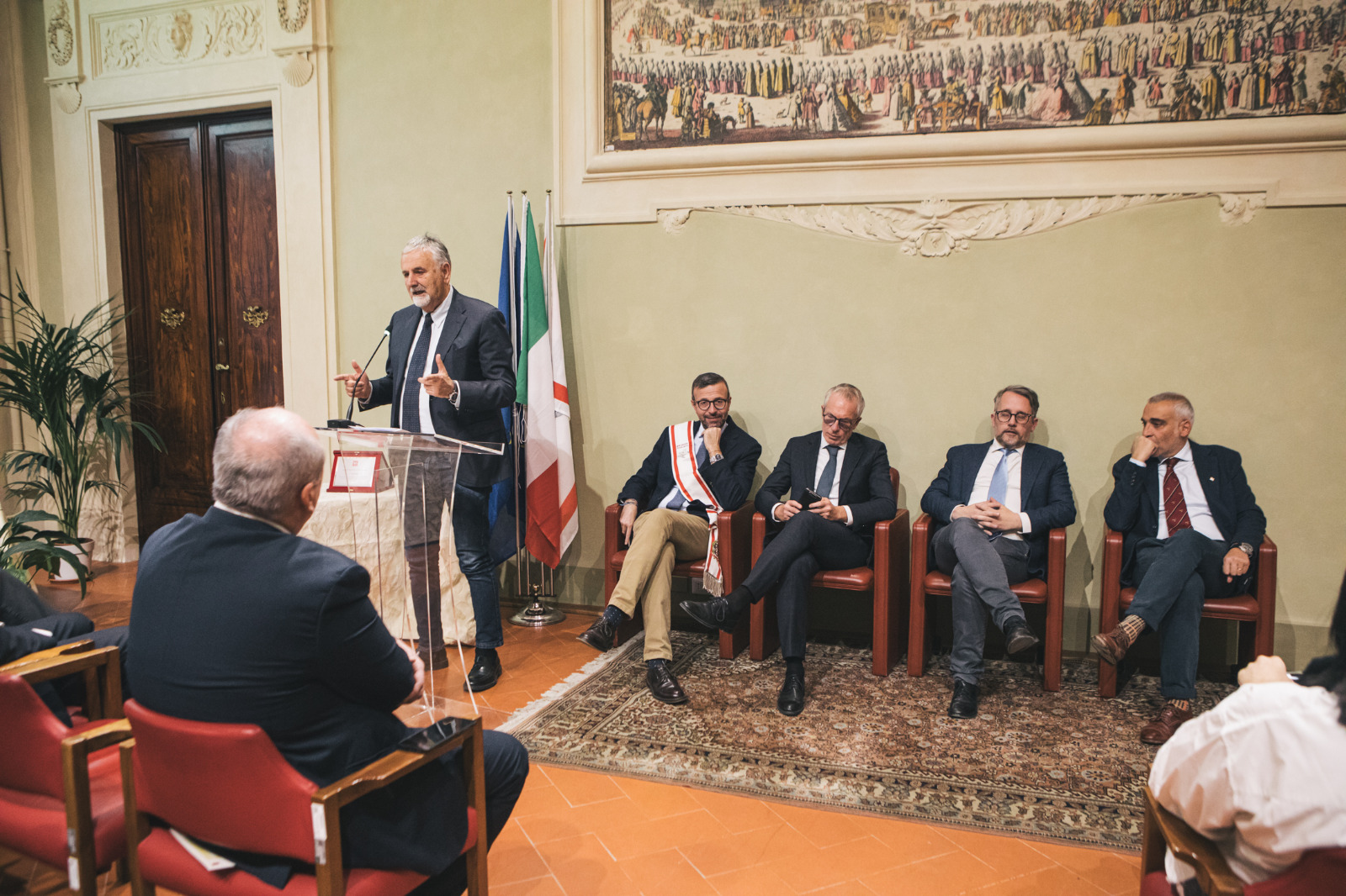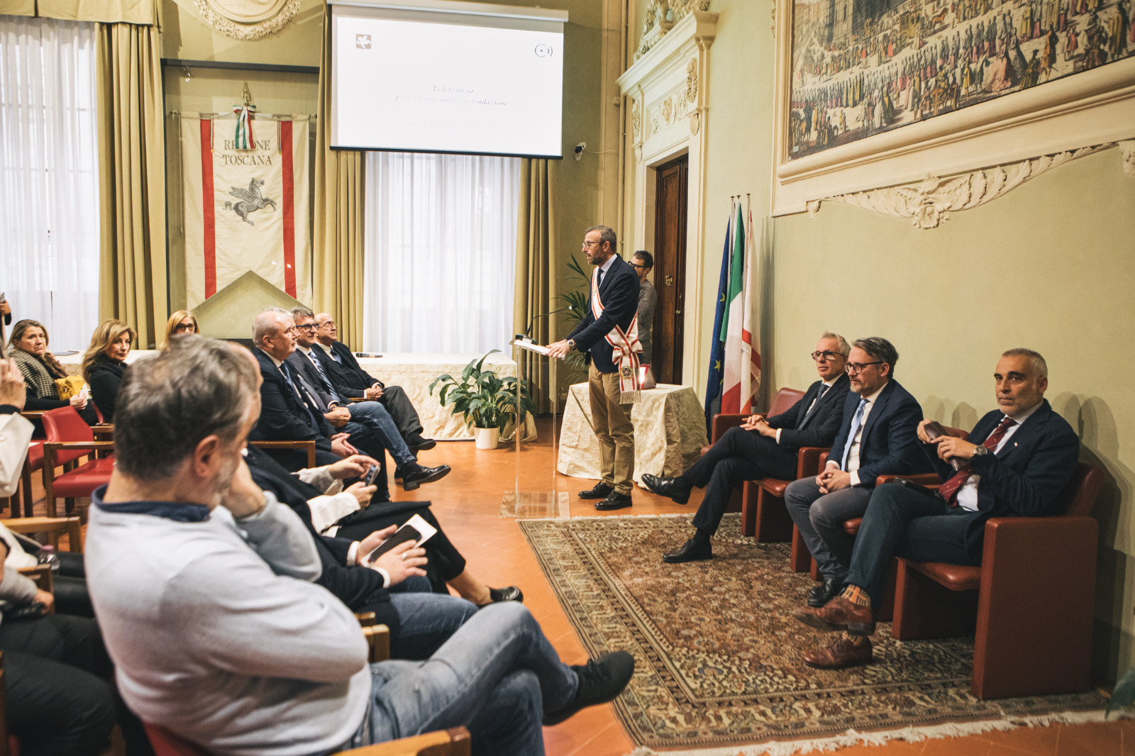 Un riconoscimento proposto all’Ufficio di presidenza dal consigliere regionale Vincenzo Ceccarelli con il presidente del Corecom toscano Marco Meacci, presenti nella sala Gonfalone con i vicepresidenti del Consiglio regionale Stefano Scaramelli e Marco Casucci e il consigliere segretario dell’Ufficio di presidenza Diego Petrucci. Sono intervenuti anche i consiglieri regionali rappresentanti del territorio aretino Lucia De Robertis e Gabriele Veneri e il presidente dell’Ordine dei giornalisti della Toscana Giampaolo Marchini.