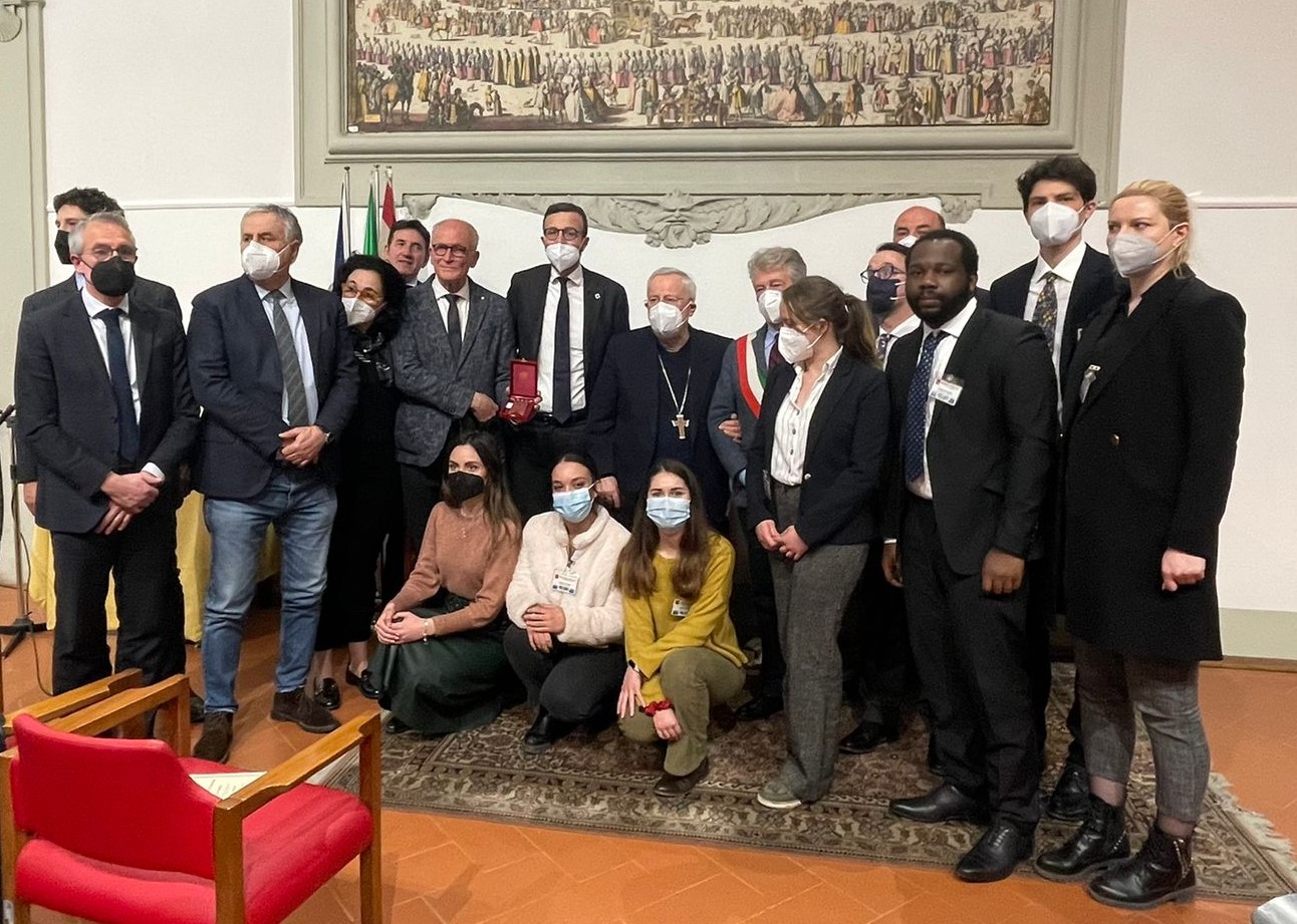 Firenze – Il Gonfalone d’argento del Consiglio regionale della Toscana è stato consegnato a Rondine Cittadella della Pace, “luogo di speranza, per lo straordinario impegno con cui da 25 anni forma giovani provenienti da tutto il mondo per favorire la risoluzione non violenta dei conflitti, il confronto, il dialogo e la pace”. Il massimo riconoscimento dell’Assemblea regionale è stato consegnato oggi, lunedì 28 febbraio, dal presidente Antonio Mazzeo a Franco Vaccari, alla presenza del cardinale Gualtiero Bassetti, presidente della Conferenza episcopale italiana. Come annunciato dieci giorni fa, in occasione della visita di una delegazione del Consiglio regionale, Mazzeo ha dato seguito all’impegno di assegnare il riconoscimento. Tante le autorità presenti oltre a Mazzeo: i vicepresidenti del Consiglio regionale Stefano Scaramelli e Marco Casucci, i consiglieri regionali Vincenzo Ceccarelli, Lucia De Robertis, Giovanni Galli, Fausto Merlotti, Massimiliano Pescini, Cristiano Benucci e Marco Stella, il presidente della Toscana Eugenio Giani, il sindaco di Arezzo Alessandro Ghinelli, il senatore Riccardo Nencini, anch’egli già presidente del Consiglio regionale, l’assessora all’Educazione e welfare del Comune di Firenze Sara Funaro e monsignor Vasco Giuliani.
