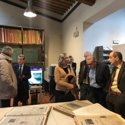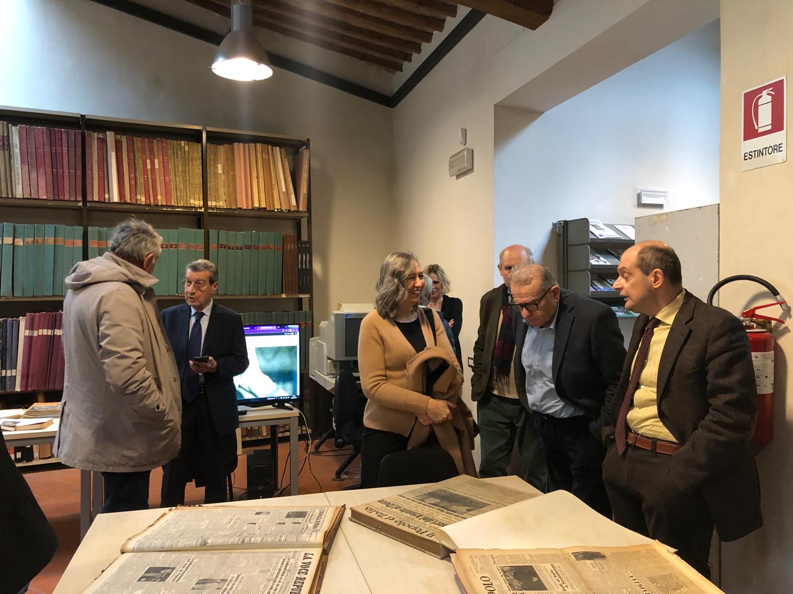 Firenze – Una folta delegazione del Consiglio regionale della Toscana, guidata dal presidente Antonio Mazzeo e dalla presidente della commissione Cultura Cristina Giachi, ha visitato questa mattina la sede dell’Istituto Storico Toscano della Resistenza e dell’Età contemporanea. Ad accoglierli con il personale della struttura, il presidente Vannino Chiti. Erano presenti i membri della commissione Cultura Stefano Scaramelli (Italia Viva), Luciana Bartolini (Lega), Elena Rosignoli (Pd) e Silvia Noferi (Movimento 5 stelle) e, in rappresentanza dei consiglieri regionali, i capigruppo di Partito democratico e Fratelli d’Italia Vincenzo Ceccarelli e Vittorio Fantozzi. Un incontro che è stato anche l’occasione per valutare l’impatto positivo della nuova legge dell’Assemblea legislativa che ha reso strutturali i finanziamenti degli Istituti regionali che si occupano della Resistenza e dell’antifascismo.