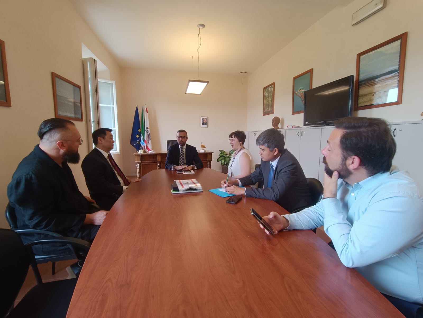Firenze – Nella sala Gianfranco Vanni della sede del Consiglio regionale all’interno del parco di Migliarino, San Rossore, Massaciuccoli, il presidente dell’Assemblea legislativa della Toscana ha incontrato Taalai Bazarbaev, ambasciatore del Kirghizistan, che era accompagnato dal console Sultan Barakanov e dall’artista Alexey Morosov, di cui stamani, a Pisa, si presenta “Exodus”, secondo atto di un progetto artistico, pensato come trilogia per cercare una matrice comune della comunità europea ampiamente intesa, che prenderà il via domani e che coinvolgerà alcuni dei luoghi più iconici della città della Torre pendente: piazza dei Miracoli, la Chiesa di Santa Maria della Spina su Lungarno Gambacorti, il Fortilizio con la Torre Guelfa su Lungarno Simonelli, l’esterno di Palazzo Blu.