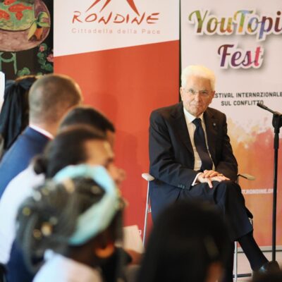 Per il presidente di Rondine Cittadella della pace, Franco Vaccari, “è una giornata di grande importanza, l’aspettavamo da tempo. Avere il Presidente della Repubblica con noi è una gioia, un onore. Darà tanto coraggio ai giovani, ai giovani che provengono dai luoghi della guerra e ai giovani italiani, che si saldano in un abbraccio e ognuno tornerà a casa convinto che può fare qualcosa per la pace. Non rimanere attoniti, sbigottiti o angosciati, ma fare qualcosa per la pace. Oggi abbiamo la testimonianza che si può fare”.