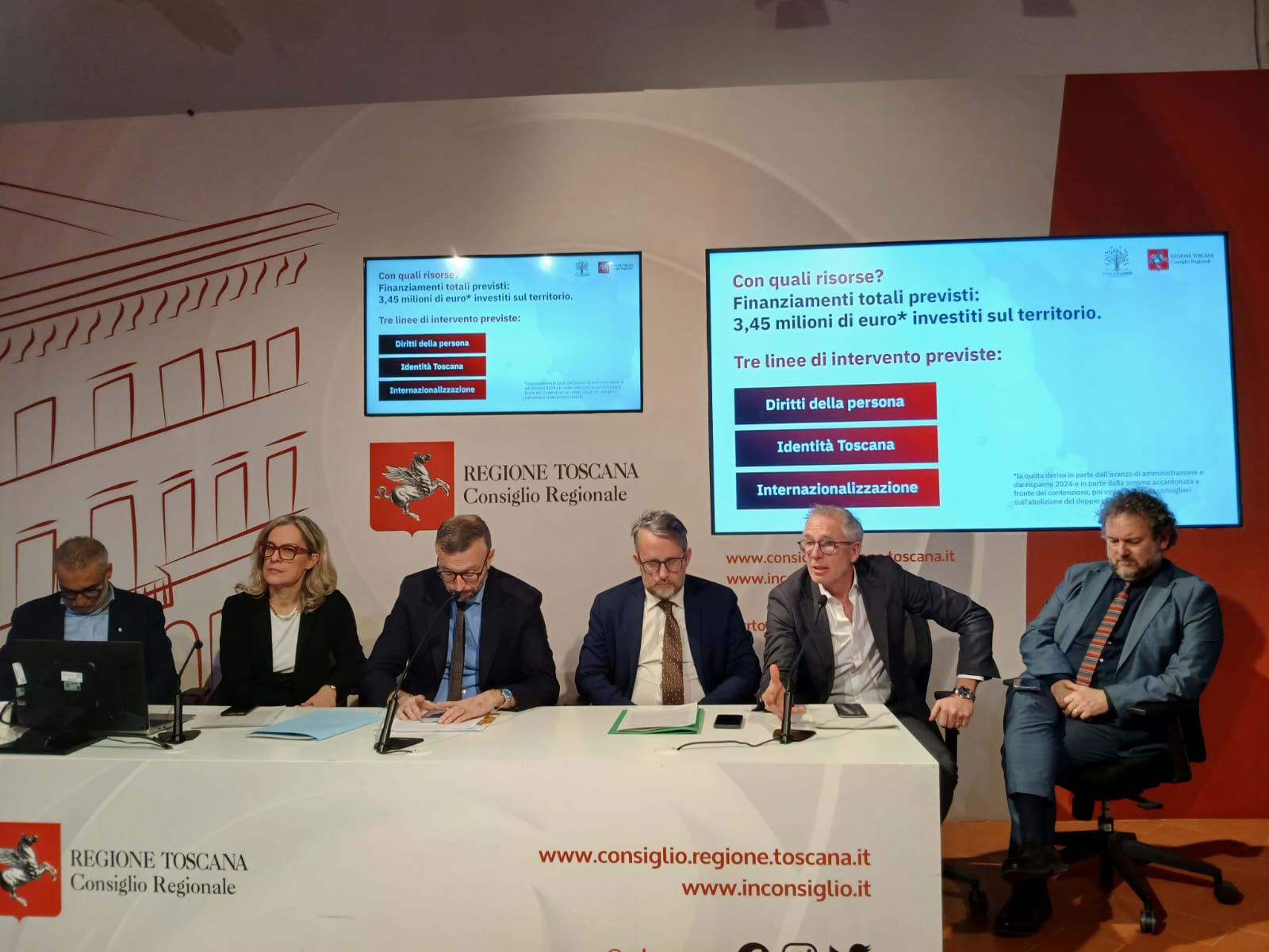 Una visione nitida di Toscana, da trasformare in azioni concrete, grazie ad un investimento totale di 3,45 milioni di euro, suddivisi in tre linee di intervento principali: diritti della persona, identità toscana e internazionalizzazione. Risorse che derivano in parte dall’avanzo di amministrazione, dai risparmi ottenuti nel 2024 e dalla somma accantonata a seguito del contenzioso vinto con gli ex consiglieri sulla questione del doppio vitalizio.