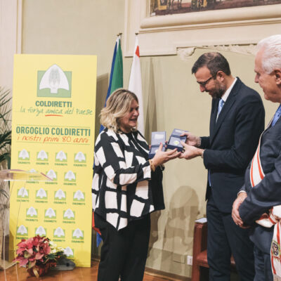 Il riconoscimento si legge nella motivazione è stato attribuito a Coldiretti ‘nei suoi 80 anni di attività per il lavoro svolto a favore degli agricoltori e dei valori del mondo agricolo italiano’.