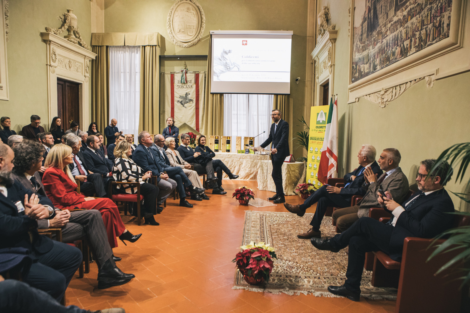 Sono intervenuti alla cerimonia per Coldiretti con la presidente e il direttore i presidenti delle federazioni provinciali Andrea Landini per Prato, Simone Castelli per Grosseto, Lidia Castellucci per Arezzo, Andrea Elmi per Lucca, Marco Pacini per Pisa, Simone Ferri Graziani per Livorno, Luigi Sardone per Siena e il vicepresidente Fabrizio Tesi per Pistoia. Erano presenti anche Michela Nieri, delegata per le donne imprenditrici, Francesco Panzacchi delegato per i giovani imprenditori, Fabrizio Filippi presidente del Consorzio Olio Toscano IGP, Roberto Nocentini presidente Associazione Regionale Allevatori, Paolo Giorgi presidente di Agrozootecnica Toscana, Marco Masala presidente agriturismi Toscana e Vincenzo Tongiani presidente del Consorzio di difesa dei produttori agricoli.