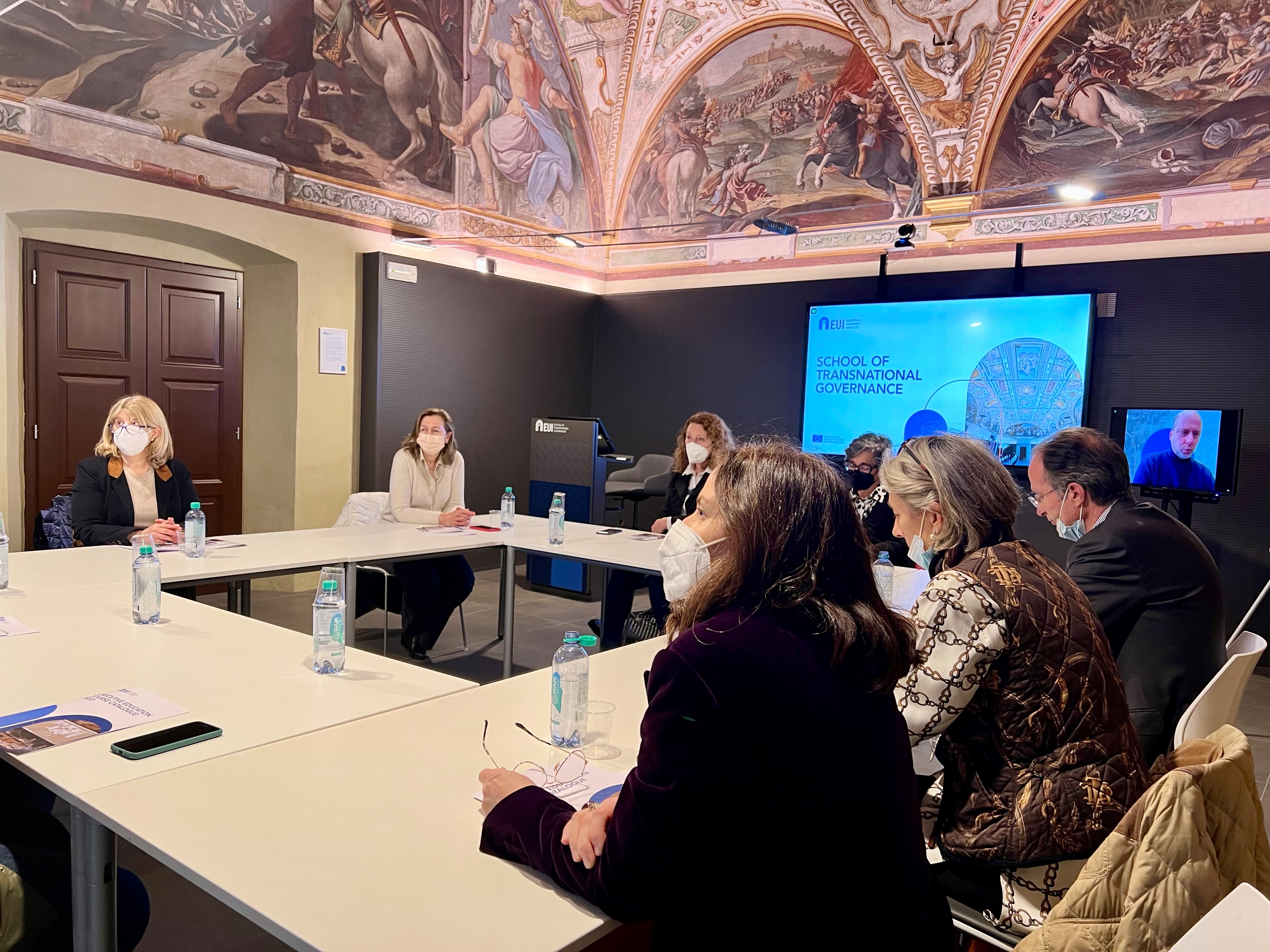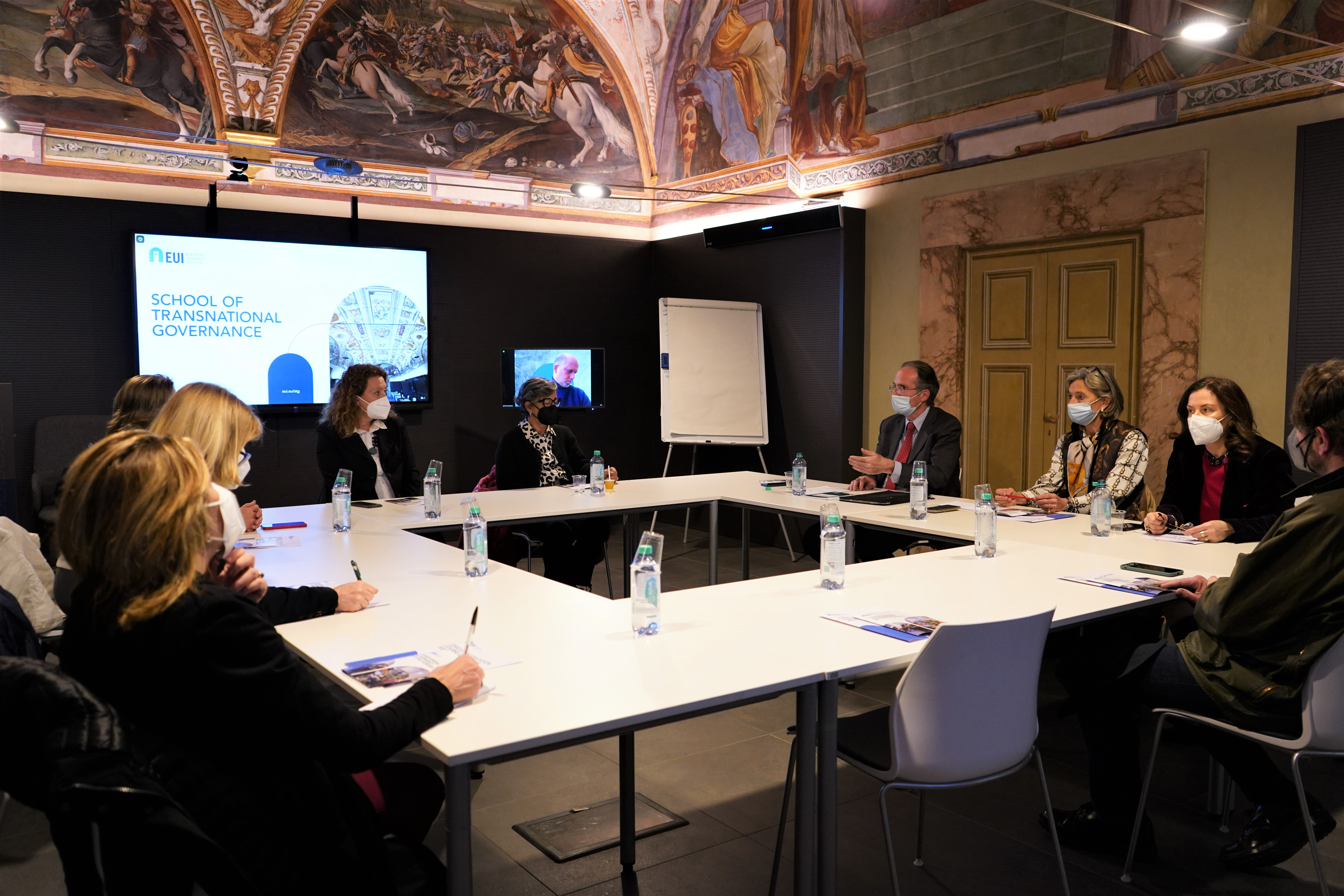 Ieri, giovedì 31 marzo, una delegazione della commissione Istruzione e cultura composta dalla presidente Cristina Giachi (Pd), dalla vicepresidente Luciana Bartolini (Lega) e dai consiglieri Elena Rosignoli (Pd), Silvia Noferi (Movimento 5 Stelle) e Gabriele Veneri (Fratelli d’Italia) è stata ricevuta a Palazzo Buontalenti dal segretario generale Marco Del Panta e da Kathinka España direttrice del Real Estate and Facilities Service. A illustrare il lavoro che si fa alla School of Transnational Governance per formare gli amministratori e diplomatici del futuro, in collegamento da remoto, l’executive director Fabrizio Tassinari.