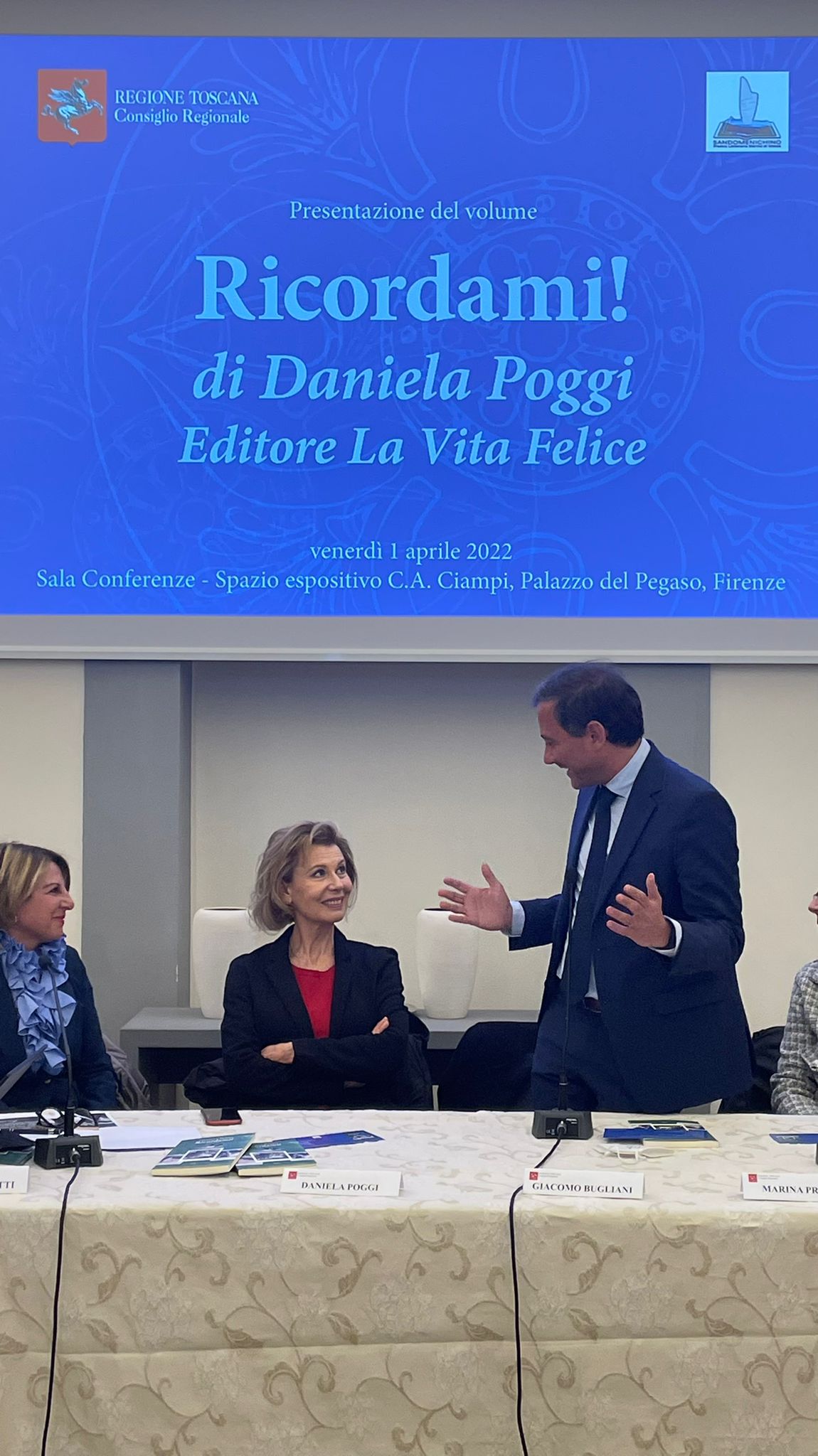 “È un onore presentare questo volume che ha una forte valenza sociale. Sono legato all’autrice da un rapporto di stima e amicizia e le sue capacità sono indiscutibili” ha dichiarato ancora Bugliani ricordando che Poggi è stata insignita del premio alla carriera Sandomenichino 2021, una delle realtà culturali più importanti della provincia di Massa Carrara. Presentare un’autrice come Daniela nei locali del Consiglio regionale della Toscana, è come esportare Sandomenichino a Firenze e conferirgli una dimensione di carattere regionale”. Il premio, peraltro, è il più longevo d’Italia nella sezione poesia.