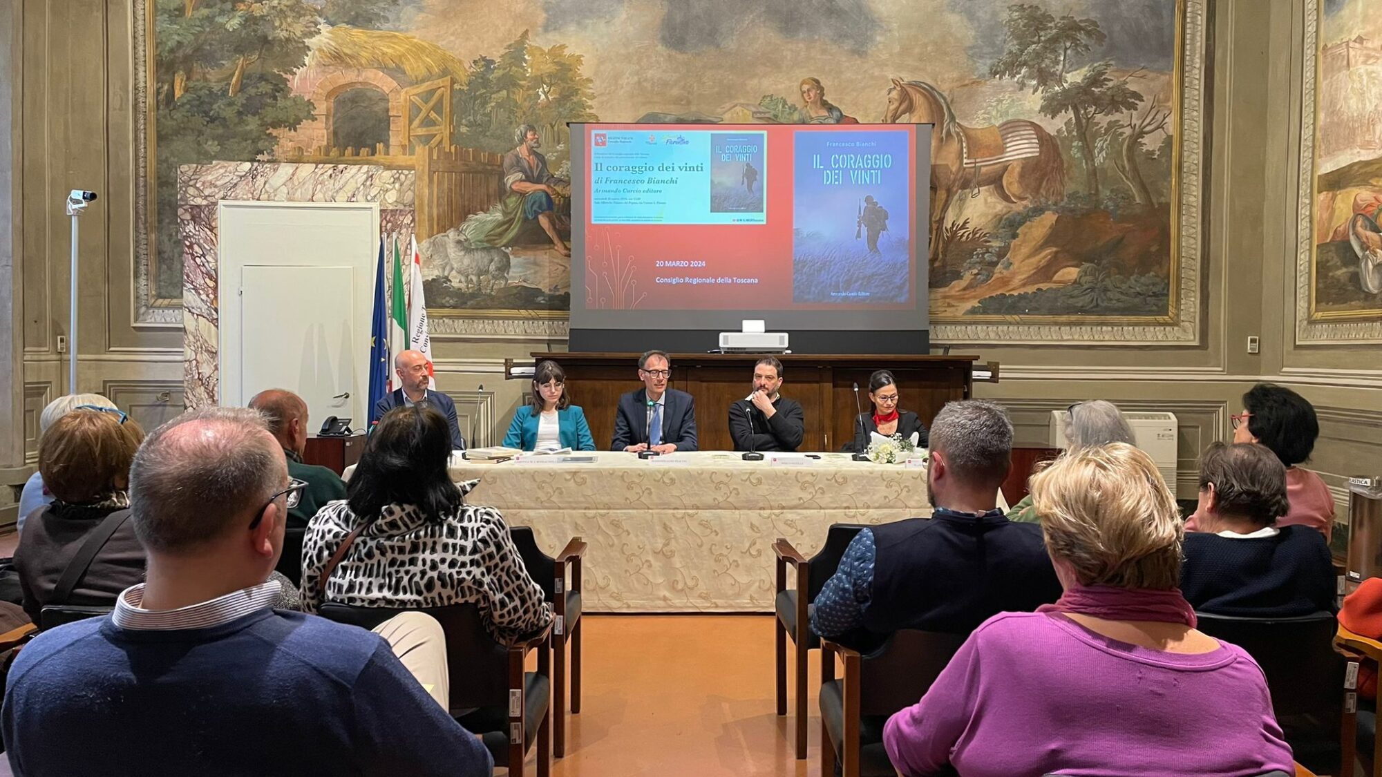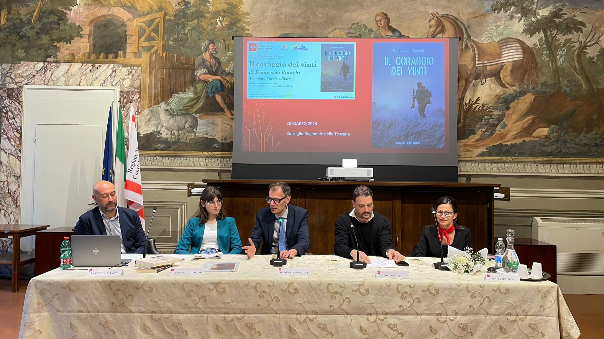 Firenze – Il coraggio dei vinti, di Armando Curcio editore, è il titolo del volume presentato mercoledì 20 marzo nella sala Affreschi di palazzo del Pegaso. “È una storia di resilienza – spiega l’autore Francesco Bianchi – fortemente radicata nel territorio toscano. Il racconto di una deportazione legata al periodo della Seconda guerra mondiale, soprattutto nel periodo dopo l’armistizio. Protagonista è una famiglia contadina di mezzadri che caratterizzava un po’ il centro Italia in quel periodo. Ci sono tre figli che in situazioni molto diverse hanno a che fare con la deportazione e la prigionia”.