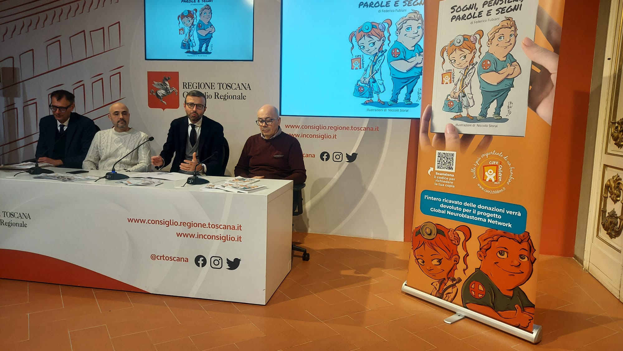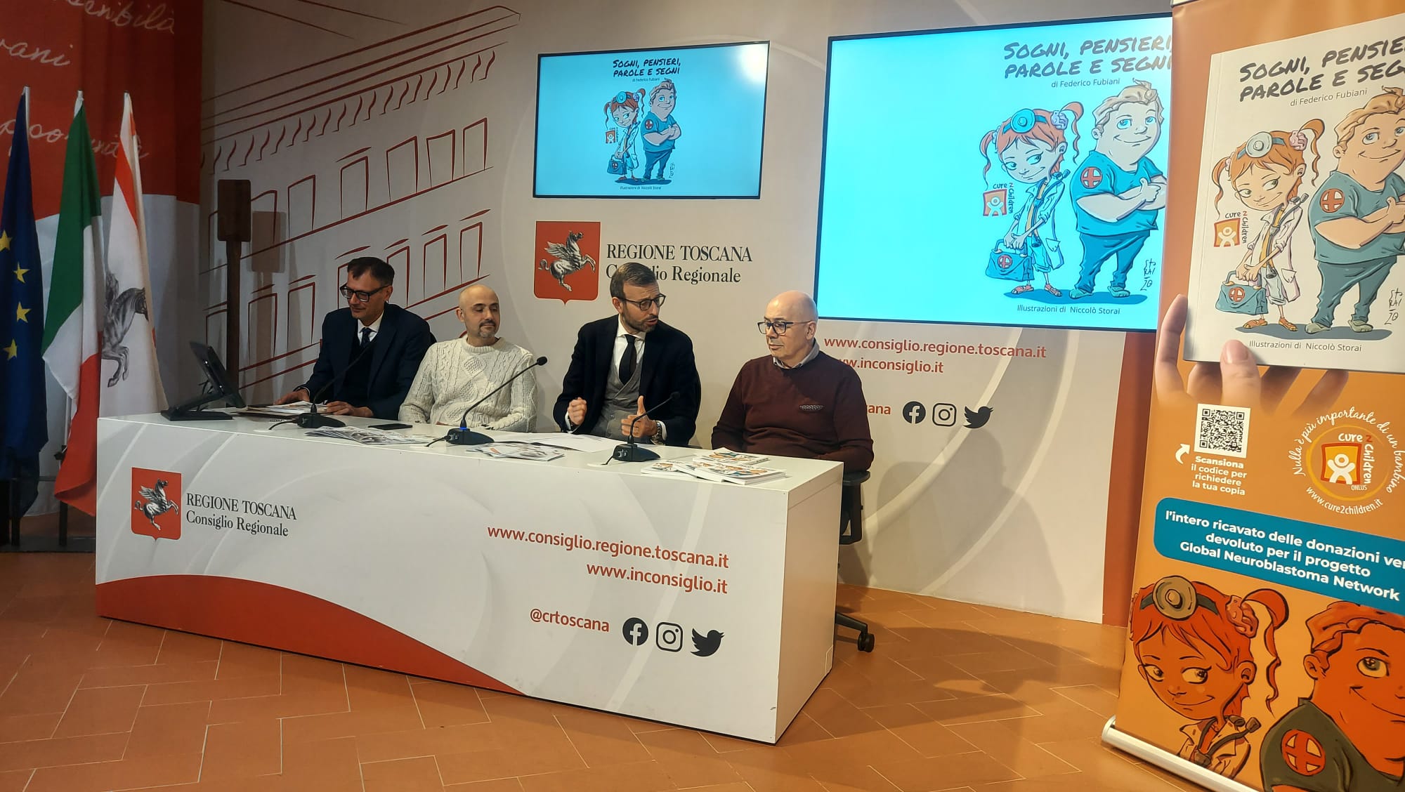 Firenze – È stato presentato presso il Media Center Sassoli al Palazzo del Pegaso il volume di racconti “Sogni, Pensieri, Parole E Segni” di Federico Fubiani, con le Illustrazioni di Niccolò Storai, il cui ricavato è devoluto all’Associazione Onlus Cure2Children per il Progetto Global Neuroblastoma Network.