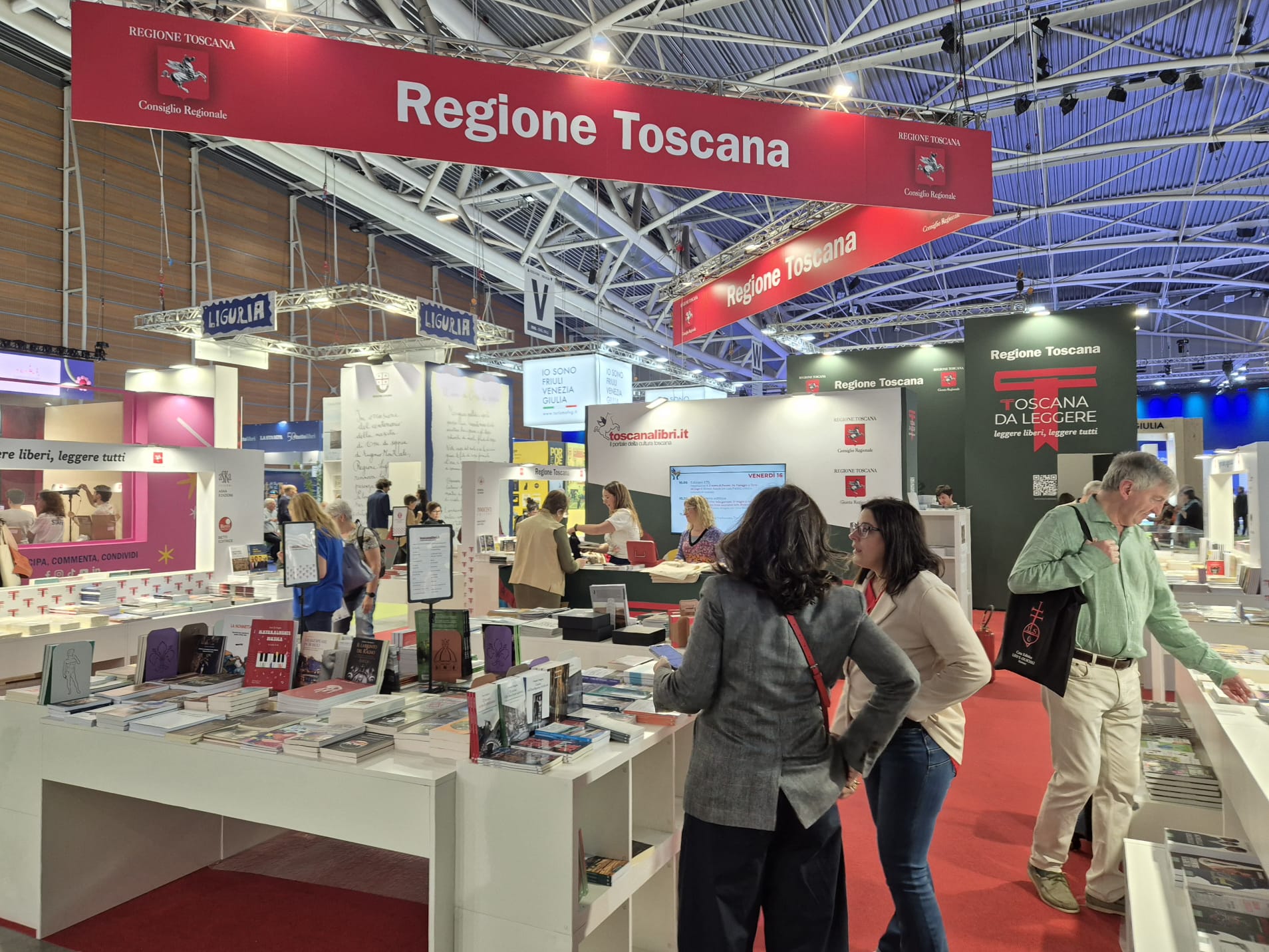 Da oggi e fino al 19 maggio si alterneranno in presentazioni ed eventi i 46 piccoli e medi editori toscani e le tante realtà presenti al Lingotto: il Gabinetto G.P. Vieusseux, le quattro Unipress toscane, la Stamperia braille della Regione, la Biblioteca della Toscana Pietro Leopoldo, Fondazione Sistema Toscana, Toscana Promozione Turistica, il progetto ‘La Toscana delle Donne’, toscanalibri.it , i Festival e premi letterari toscani e la Fondazione Archivio Diaristico Nazionale.