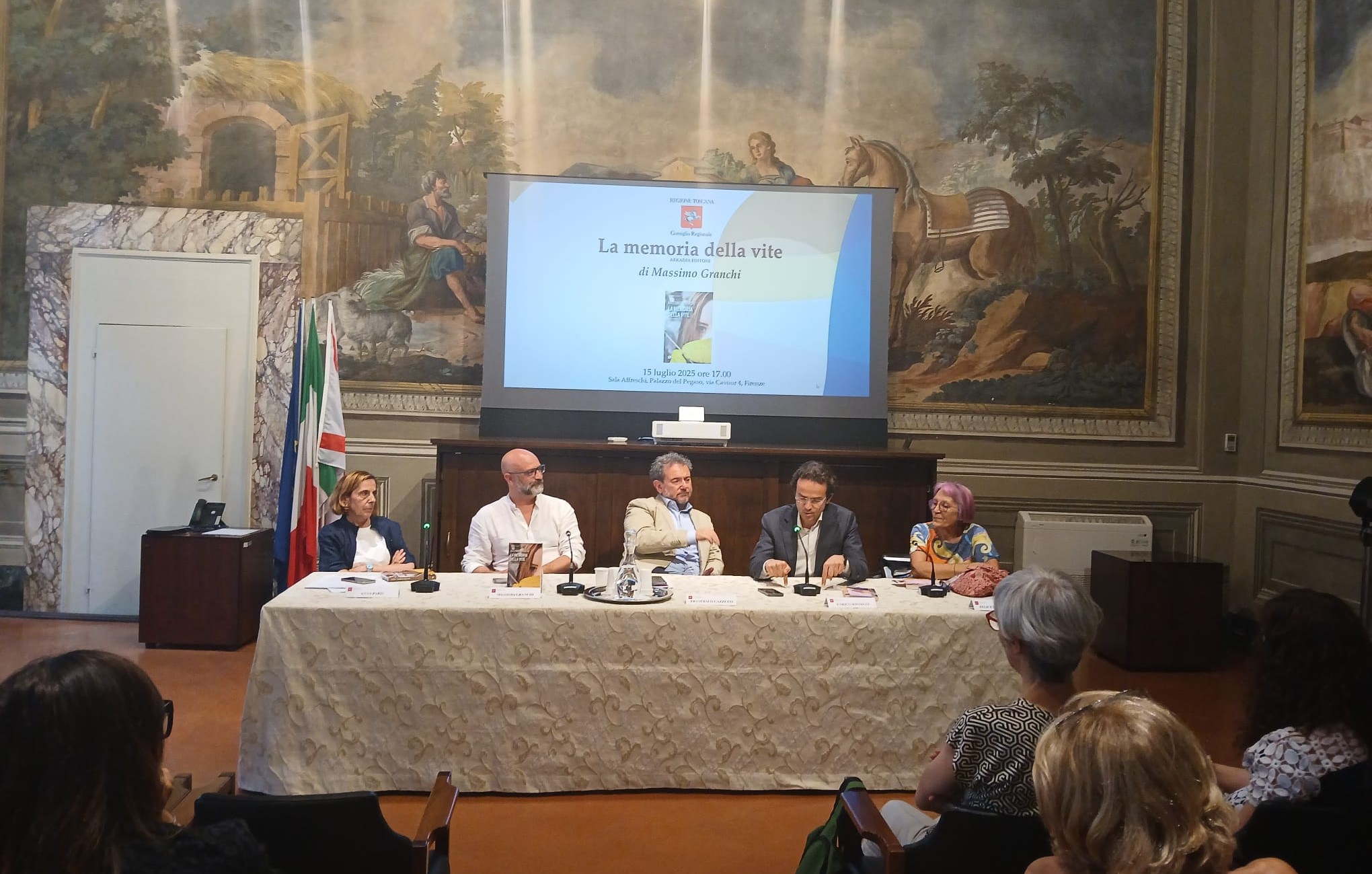 Firenze – Storia di tre vite che si intrecciano e si trovano insieme ad affrontare una tragedia. Si parla di letteratura e di ‘fine vita’ alla presentazione del romanzo di Massimo Granchi ‘La memoria della vite’, edito da Arkadia e uscito nel gennaio di quest’anno. Il libro è stato presentato ieri pomeriggio, martedì 15 luglio, nella sala degli Affreschi del palazzo del Pegaso. Sono intervenuti i consiglieri regionali Francesco Gazzetti, che fa parte dell’Ufficio di presidenza dell’Assemblea legislativa toscana, Anna Paris ed Enrico Sostegni e, insieme all’autore, Felicetta Maltese, consigliera dell’associazione Luca Coscioni di Firenze, attivista e coordinatrice dei volontari della cellula fiorentina dell’associazione.