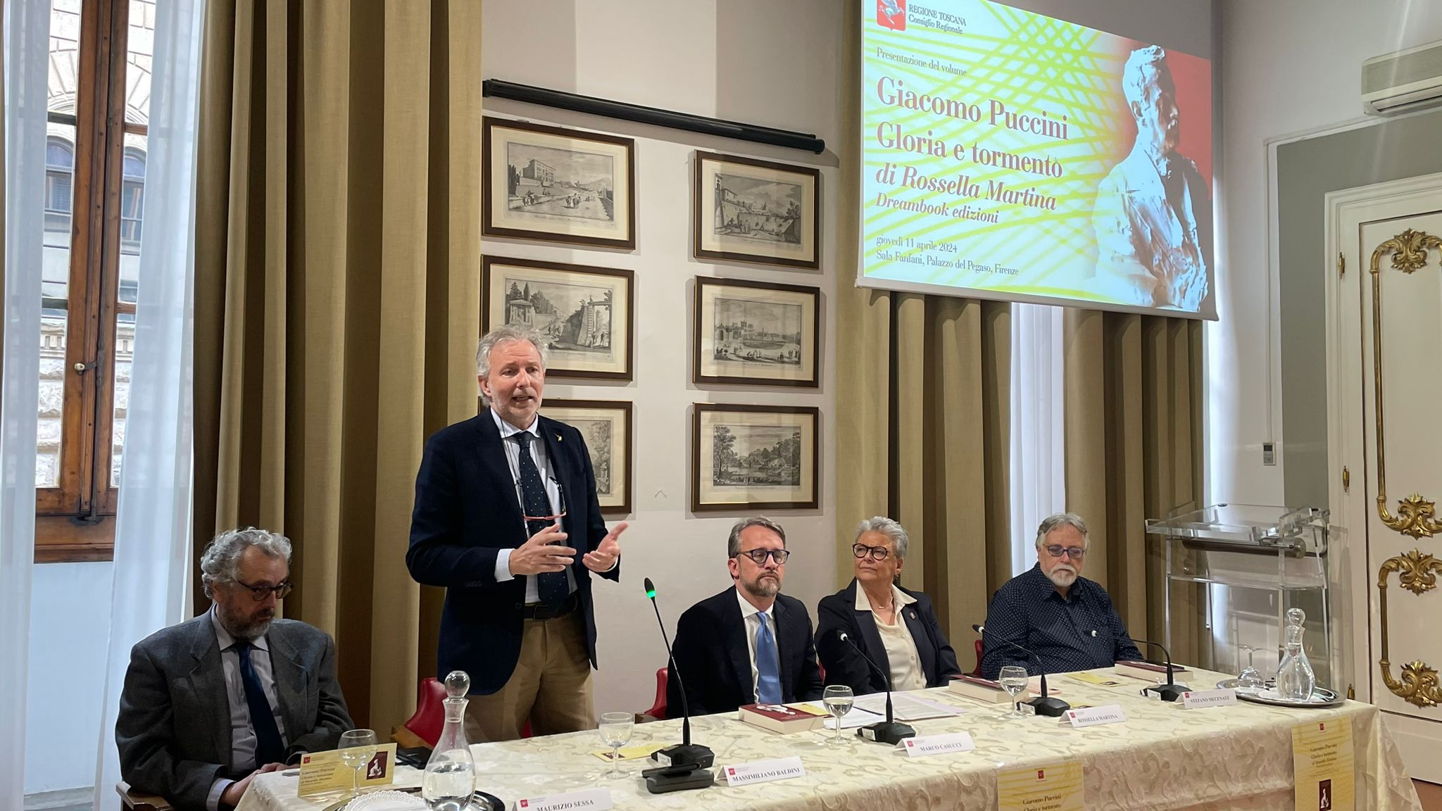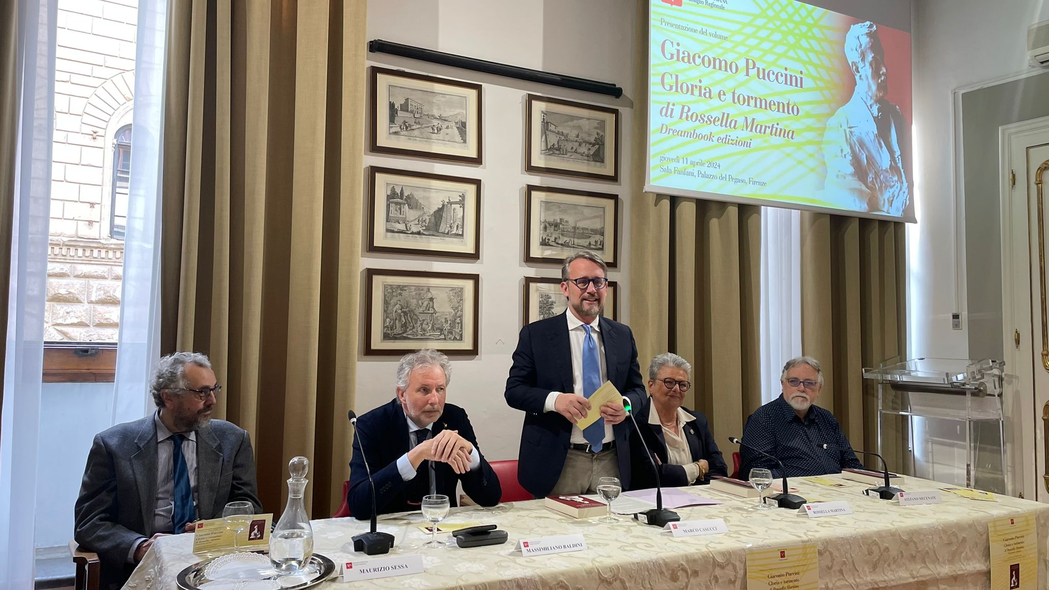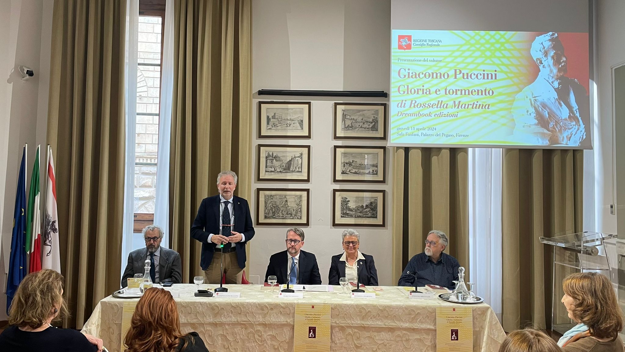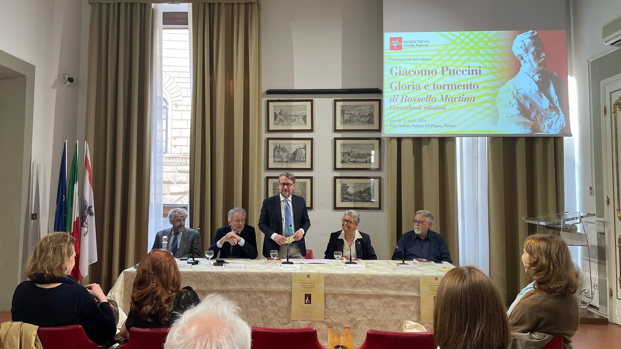 È stato presentato in sala Fanfani a palazzo del Pegaso il libro di Rossella Martina che esce nel centenario della morte del grande musicista, con gli interventi di Marco Casucci vicepresidente del Consiglio regionale e Massimiliano Riccardo Baldini consigliere regionale