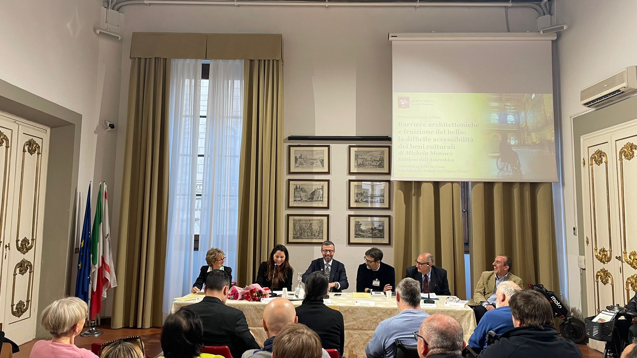 Firenze – Il libro ‘Barriere architettoniche e fruizione del bello: la difficile accessibilità dei beni culturali’ di Michela Monaco, edito dall’Assemblea legislativa toscana, è stato presentato nel pomeriggio di ieri, mercoledì 14 febbraio, nella sala Affreschi di palazzo del Pegaso. Il volume, che raccoglie la tesi di laurea di Michela Monaco, consigliera comunale a Firenze, si occupa dei problemi inerenti al diritto di accesso delle persone con disabilità agli edifici pubblici e privati e, in particolare, dei luoghi assoggettati al vincolo storico-artistico, sui quali aleggia un astratto divieto generale di modifica dell’edificio.