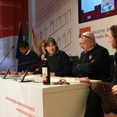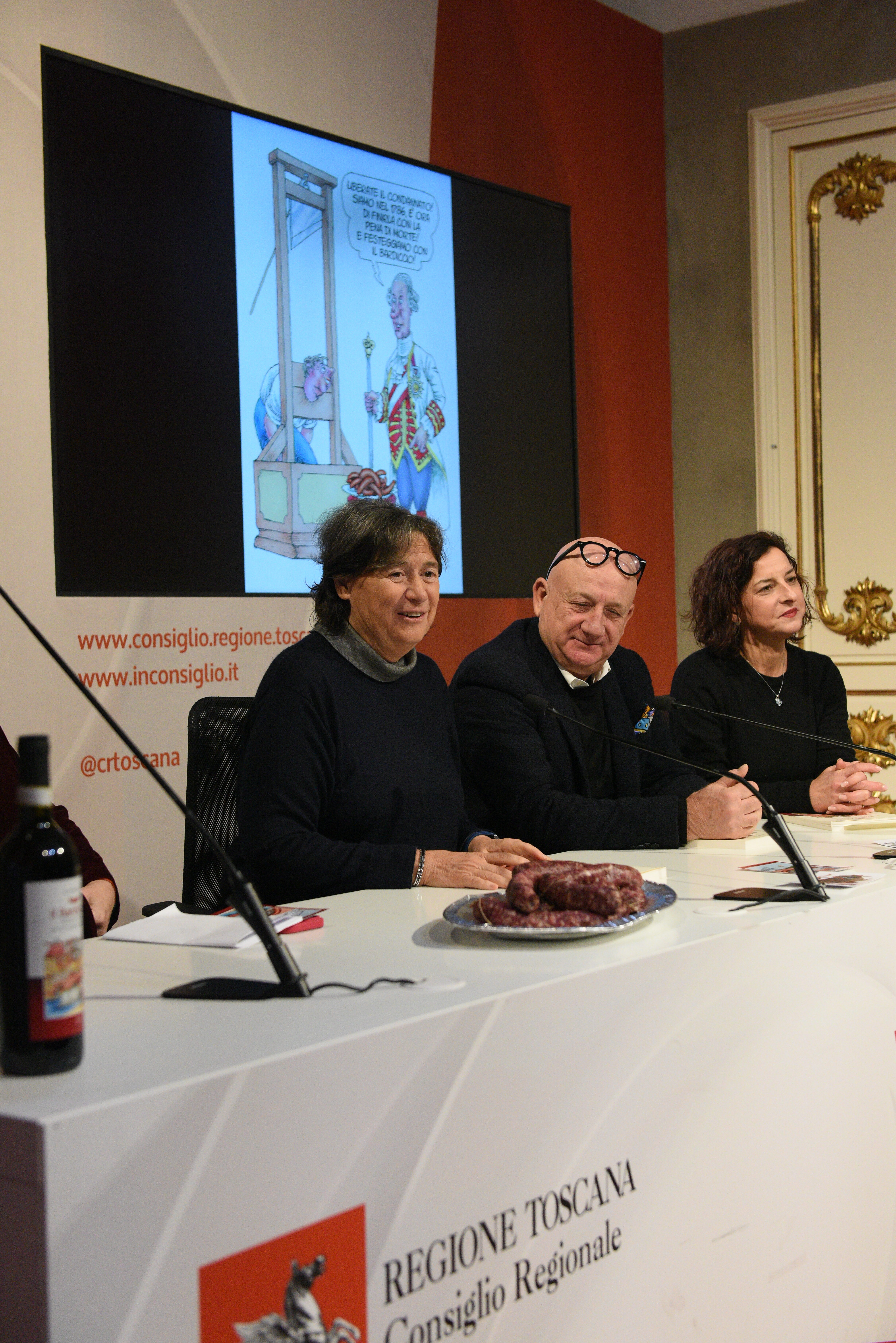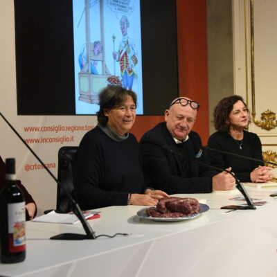 Sono interventi Stefania Saccardi presidente del Consiglio regionale, Serena Spinelli consigliera regionale, Francesco Casini consigliere regionale, Giacomo Bracaglia vicesindaco di Pelago, Luisanna Messeri esperta di cucina e l’autore Alessandro Sarti. Era presente il vignettista Lido Contemori che ha realizzato le illustrazioni del volume.
