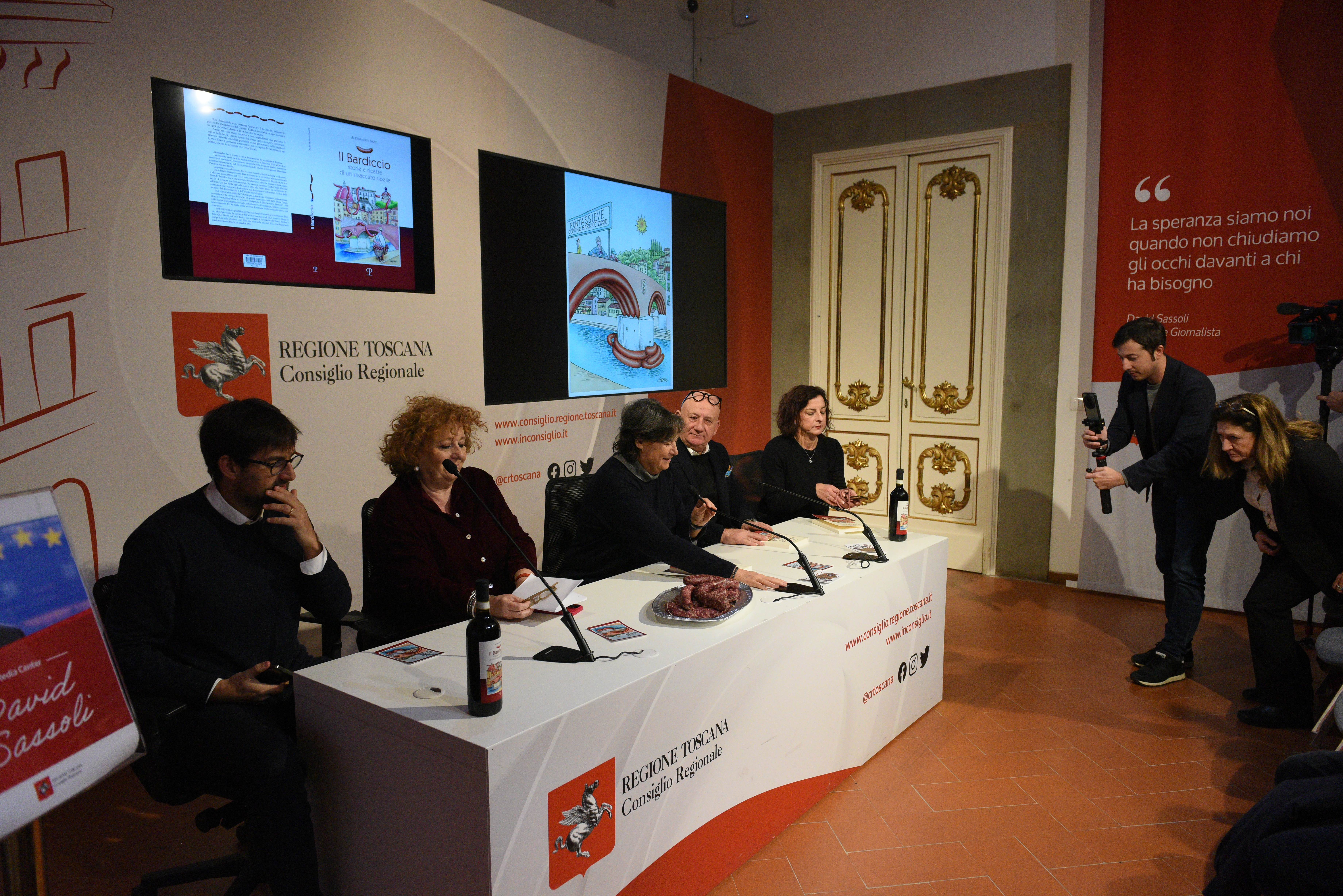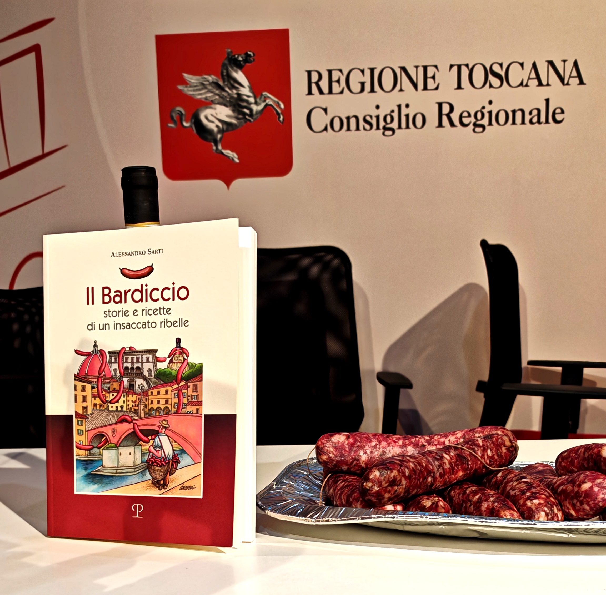 Firenze – È stato presentato al Media Center Sassoli a palazzo del Pegaso, in una conferenza stampa, il libro di Alessandro Sarti Il Bardiccio: storie e ricette di un insaccato ribelle (ed. Polistampa). In tantissimi conoscono e apprezzano il bardiccio, salume tipico della Valdisieve e delle terre del Chianti Rufina, ma se la sua fama ha oltrepassato i confini della Toscana lo si deve anche al libro di Alessandro Sarti che, a dieci anni dalla prima edizione, torna in libreria in una versione profondamente rinnovata e aggiornata al gusto contemporaneo. Il libro ha come finalità, oltre a far conoscere questo insaccato toscano, la valorizzazione di un territorio e le sue eccellenze enogastronomiche. E non manca una finalità di solidarietà sociale: i proventi delle vendite del libro, come ha annunciato Sarti, andranno infatti devoluto a Zia Caterina e al suo taxi Milano 25 “che compie uno straordinario lavoro con i ragazzi colpiti da gravi malattie.”